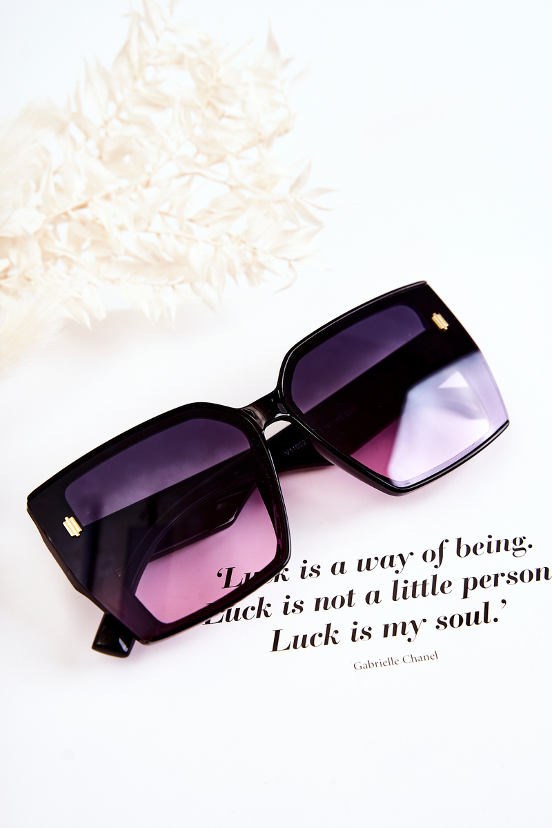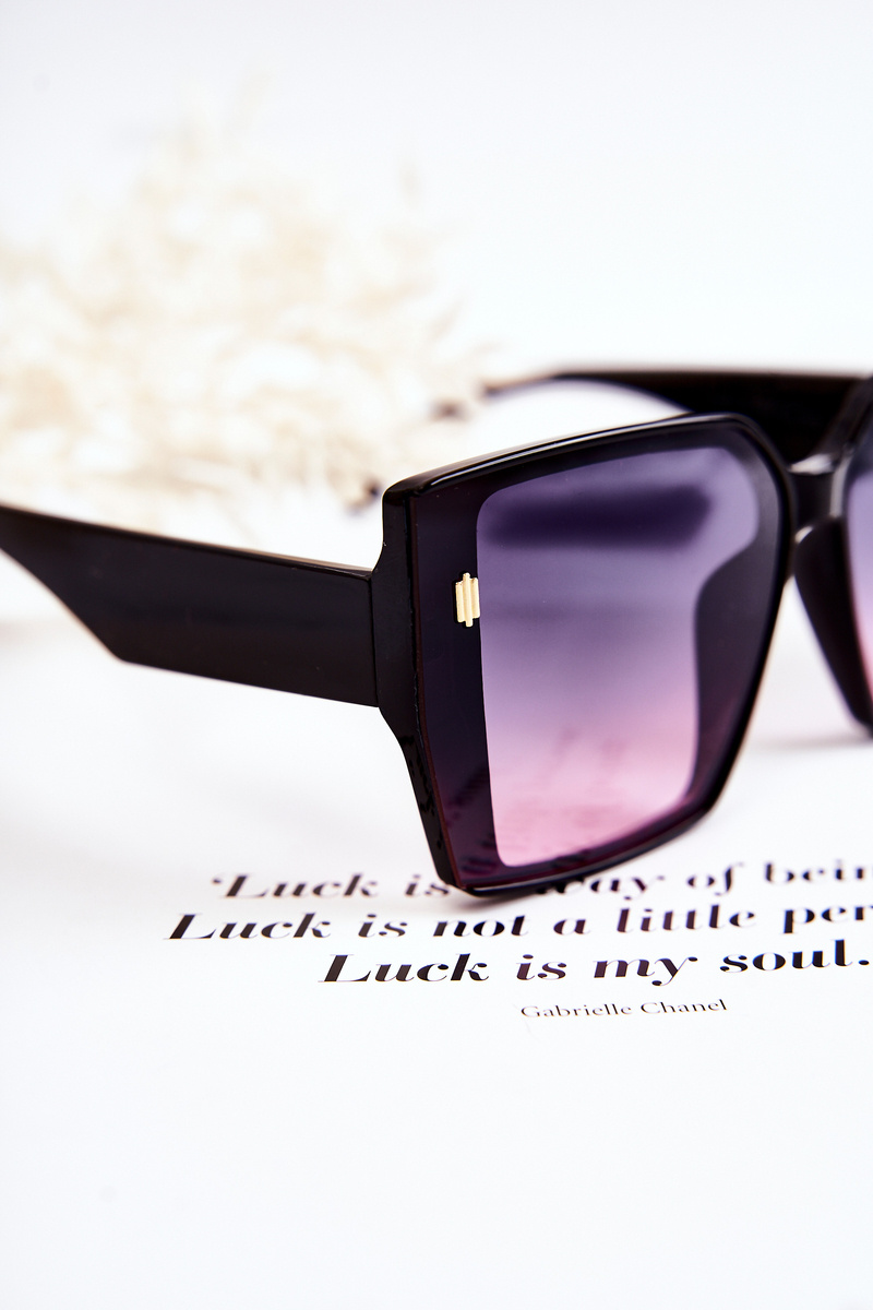 Fashionable sunglasses are great for many situations! Not only during the summer season, but also in the winter season, when the sun's rays reflect off the snow. A square model with very thin lens frames. Additionally, there is a decorative element on the lenses. Plastic bridge. Temples made of plastic, wider at the lens frames, tapered towards the end. Manufacturer's information: glasses absorb harmful UV rays, category 2.