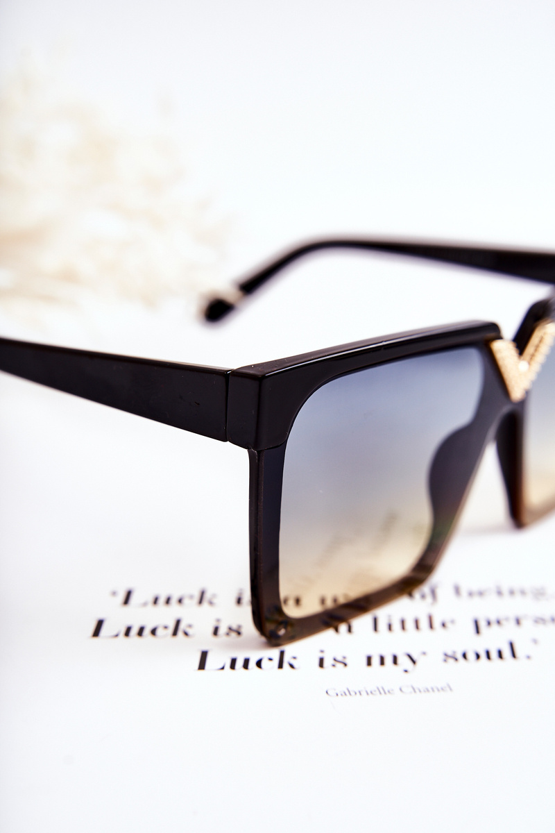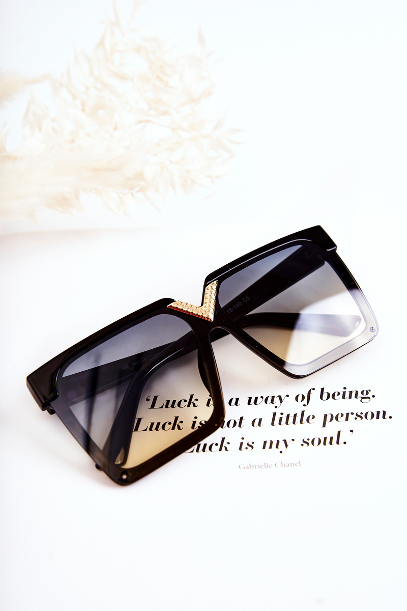 Sunglasses are great for many situations! Not only during the summer season, but also in the winter season, when the sun's rays reflect off the snow. Square model. Made of plastic. There is a decorative, golden element at the bridge. The top of the lenses has a frame. Manufacturer's information: glasses absorb harmful UV rays, category 2.
