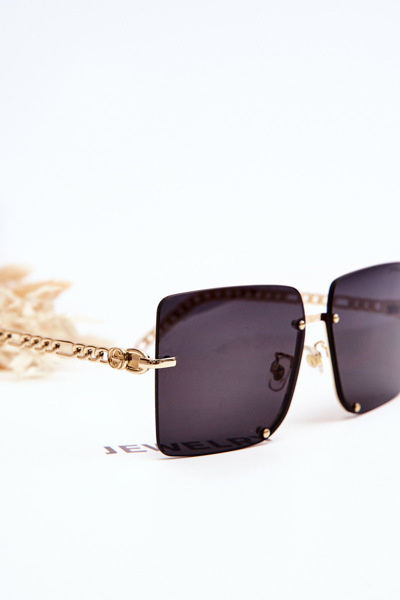 Sunglasses are perfect for sunny weather, thanks to the protection of the eyes against radiation. The glasses are made of a combination of plastic and metal. Square lenses have no frames. Fashionable temples imitate a chain. Information from the manufacturer: UV 400, category 3.