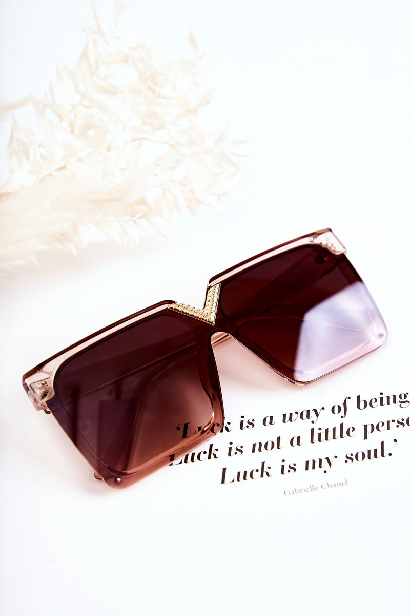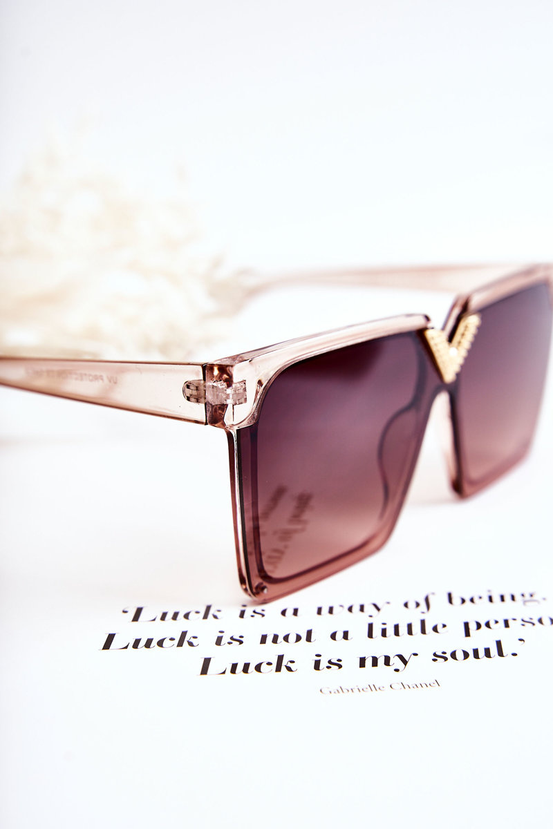 Sunglasses are great for many situations! Not only during the summer season, but also in the winter season, when the sun's rays reflect off the snow. Square model. Made of plastic. There is a decorative, golden element at the bridge. The top of the lenses has a frame. Manufacturer's information: glasses absorb harmful UV rays, category 3.