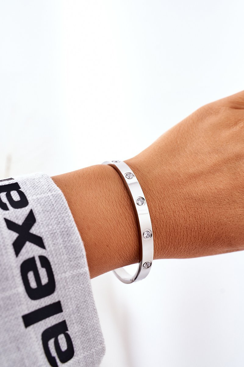The bracelet is made of stainless steel, decorated with sparkling cubic zirconia.