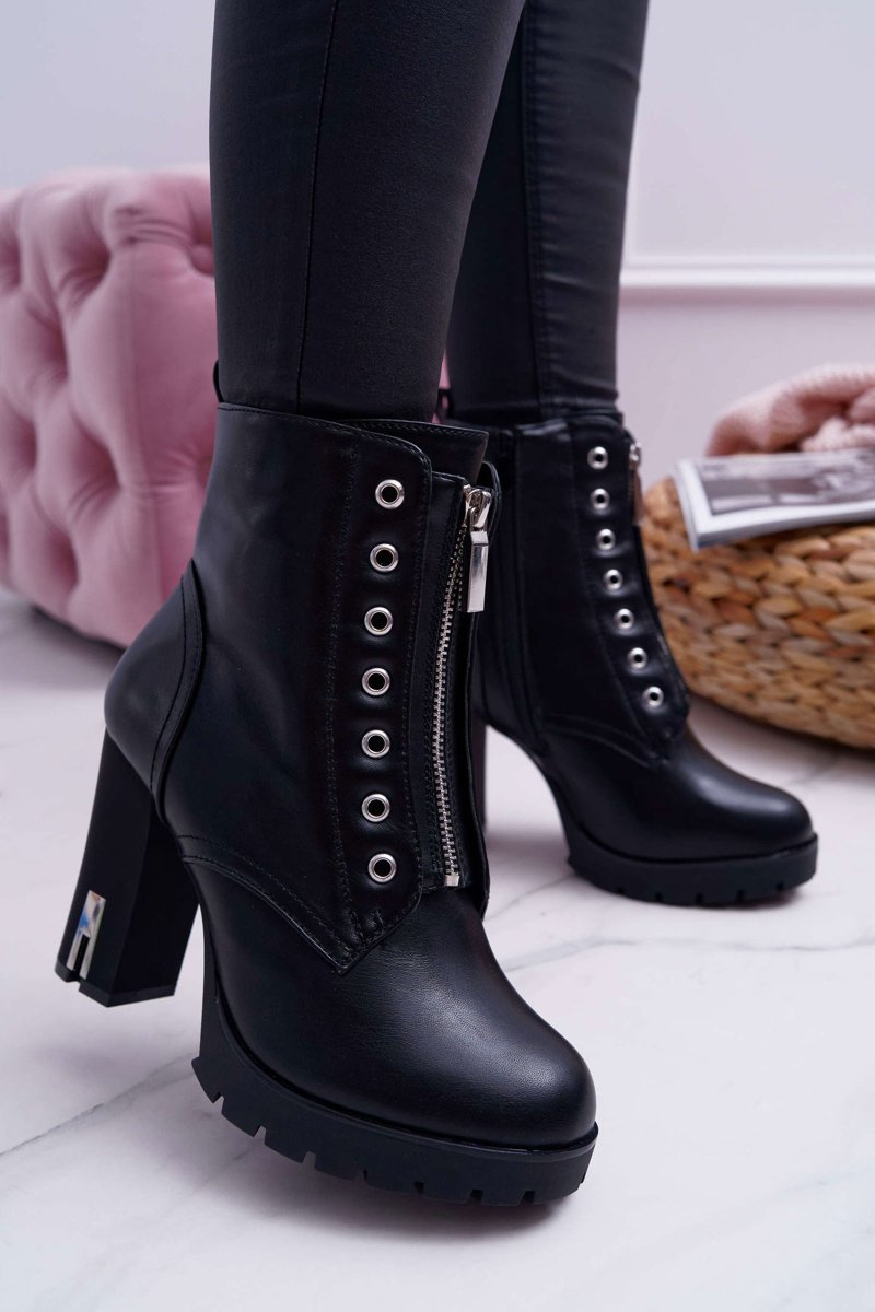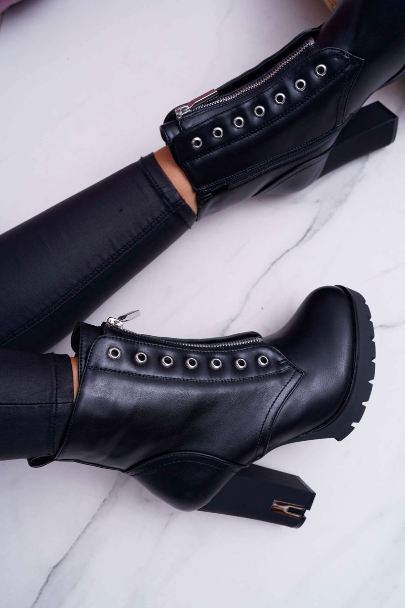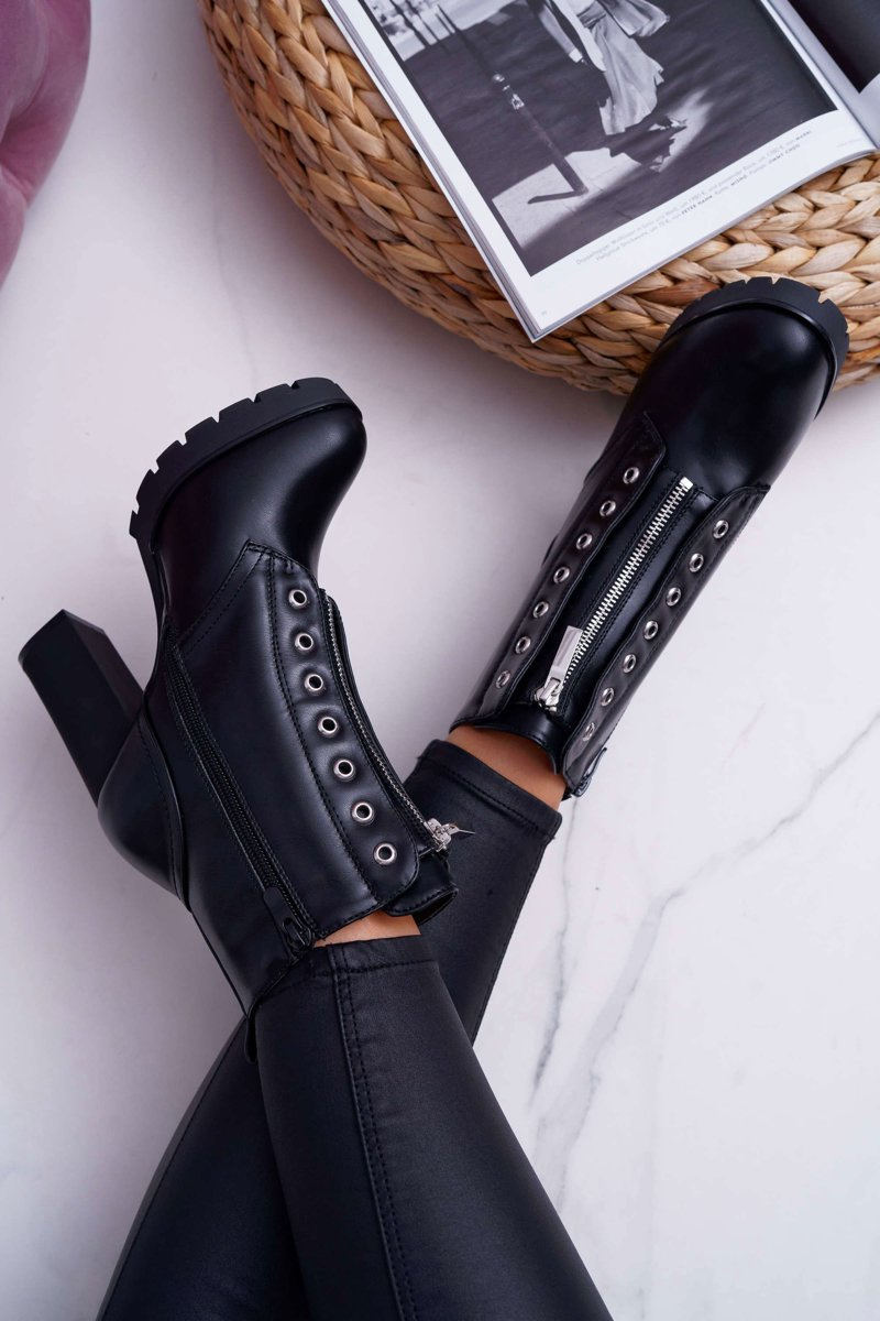Shoes should be fashionable as well as practical, and that's exactly what our boots are. A delicate stiletto, which will lift our silhouette while emphasizing the figure. The interior is covered with a nice-to-touch shoe blanket with short hair. The upper is decorated with a silver zipper and holes for laces. The boots are fastened with an additional zipper on the side. When choosing the size, please suggest the size chart, which is available after hovering over or clicking on a given size.