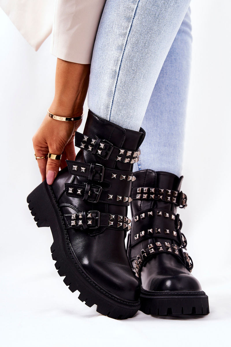 The upper and insole of the boots are made of ecological leather, while the interior is covered with textile material. The boots have a zip fastening. They have studded buckle straps. A massive platform will ensure stability on every step. Check out our other boots collection! When choosing the size, please refer to the size chart.