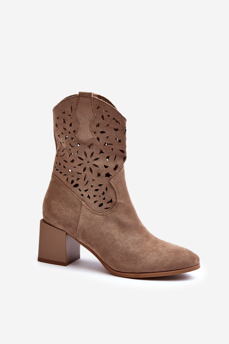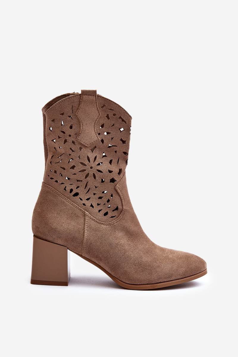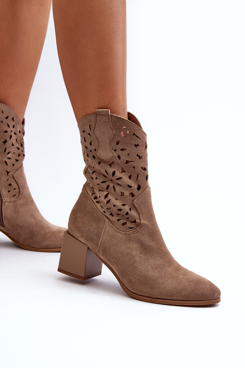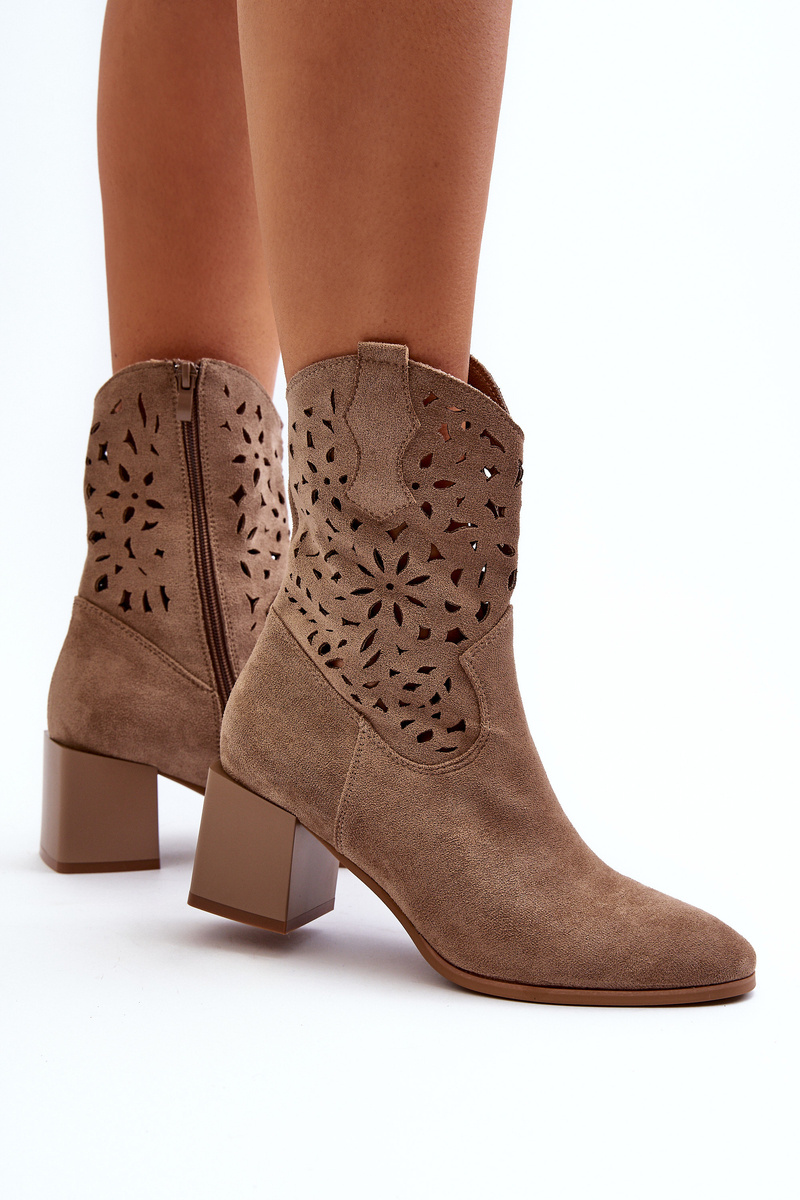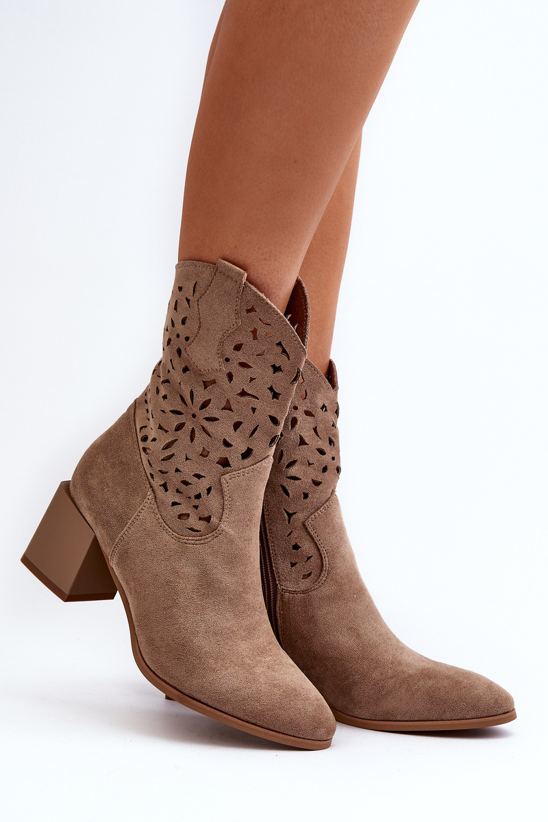 Suede Ankle Boots With Cutout Shaft On Block Heel Dark Beige Irvelame
