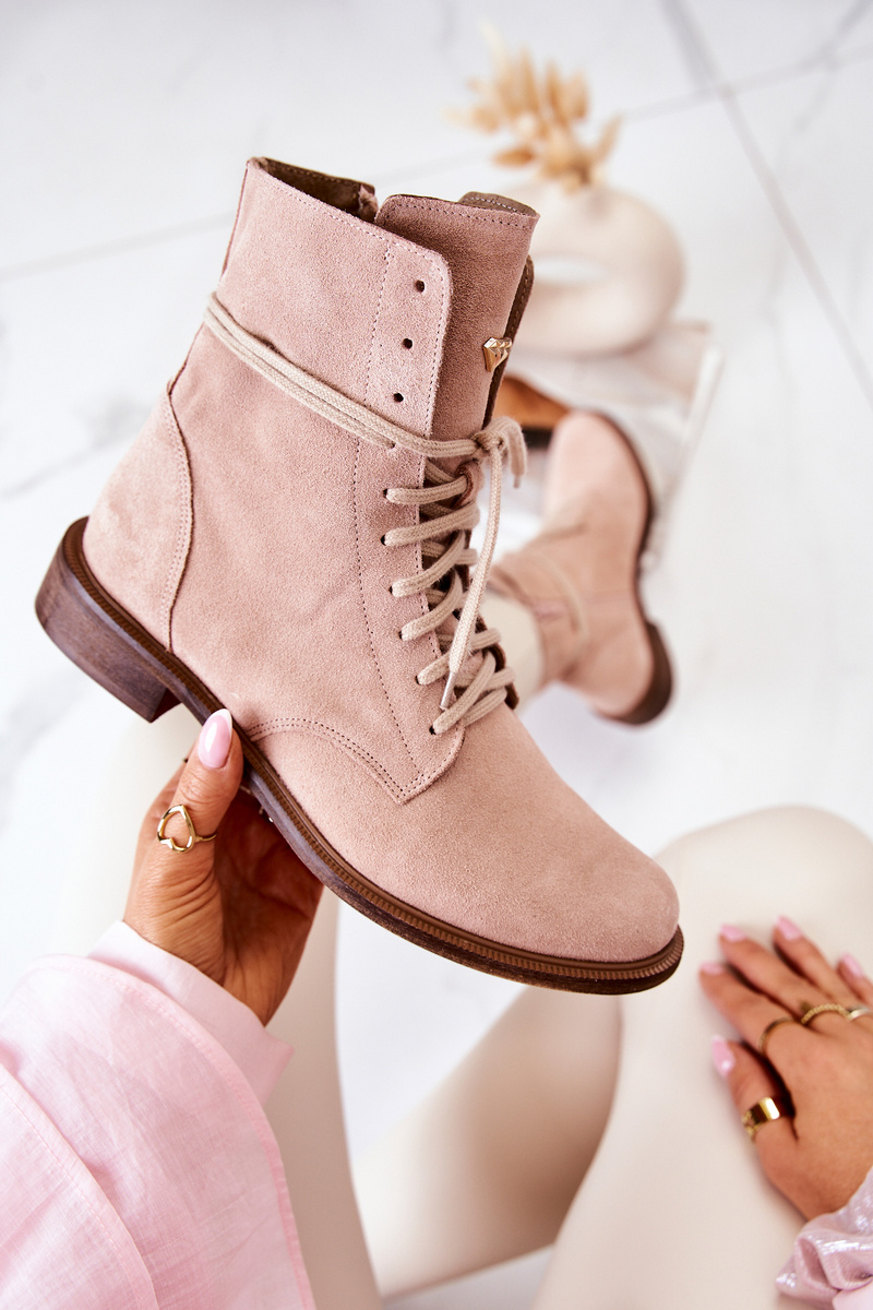 The shoes are made of natural suede. The ornament on the tongue beautifully emphasizes their unique style. It will be easier to put on the zipper sewn on the side, while the laces will ensure a better fit. Boots based on a delicate flat heel. Inside there is a leather insole that will take care of your comfort. When choosing a size, please use the size chart.