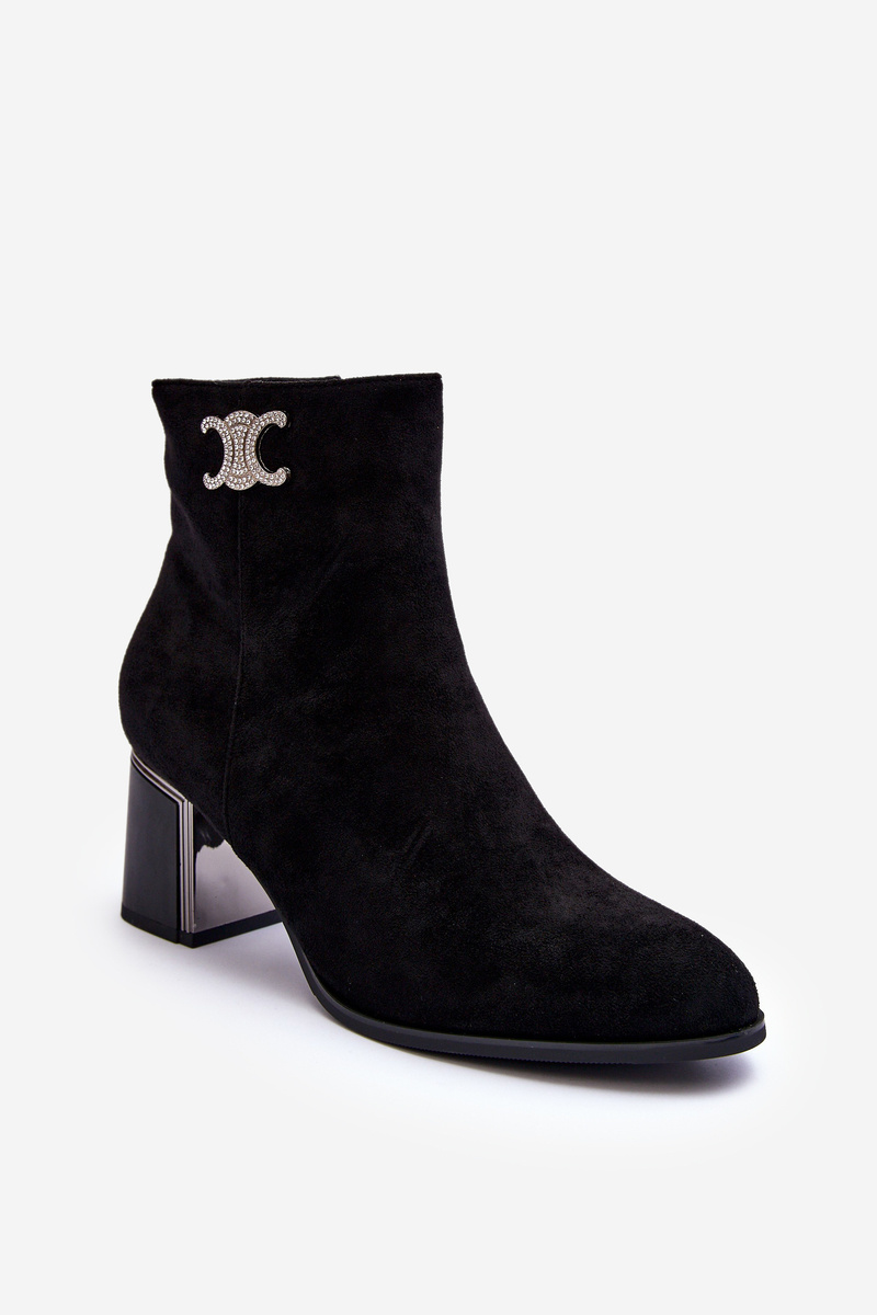Suede Boots With Ornament On Heel Black Dwinja