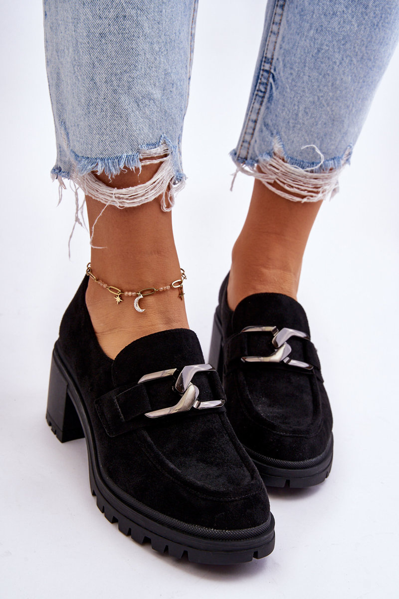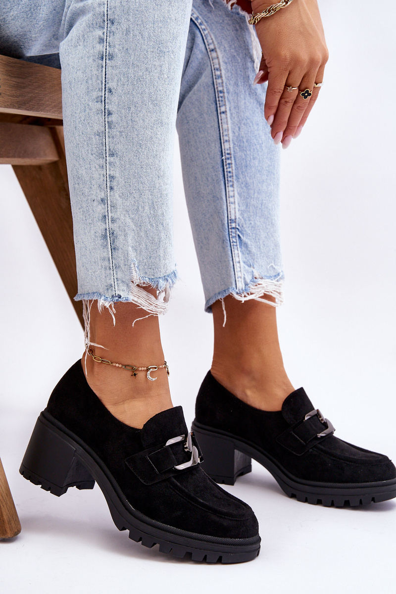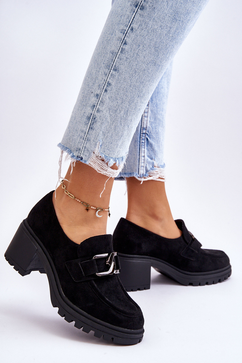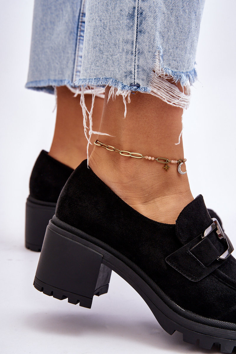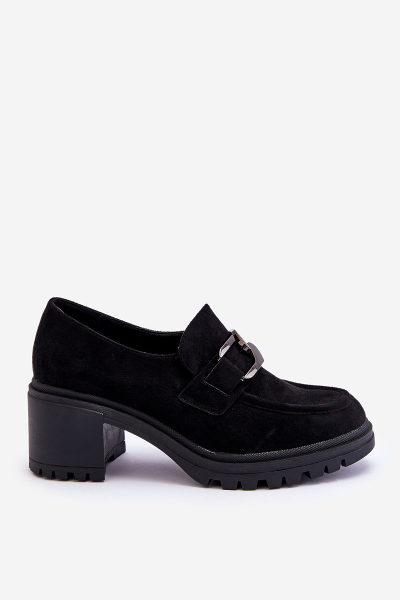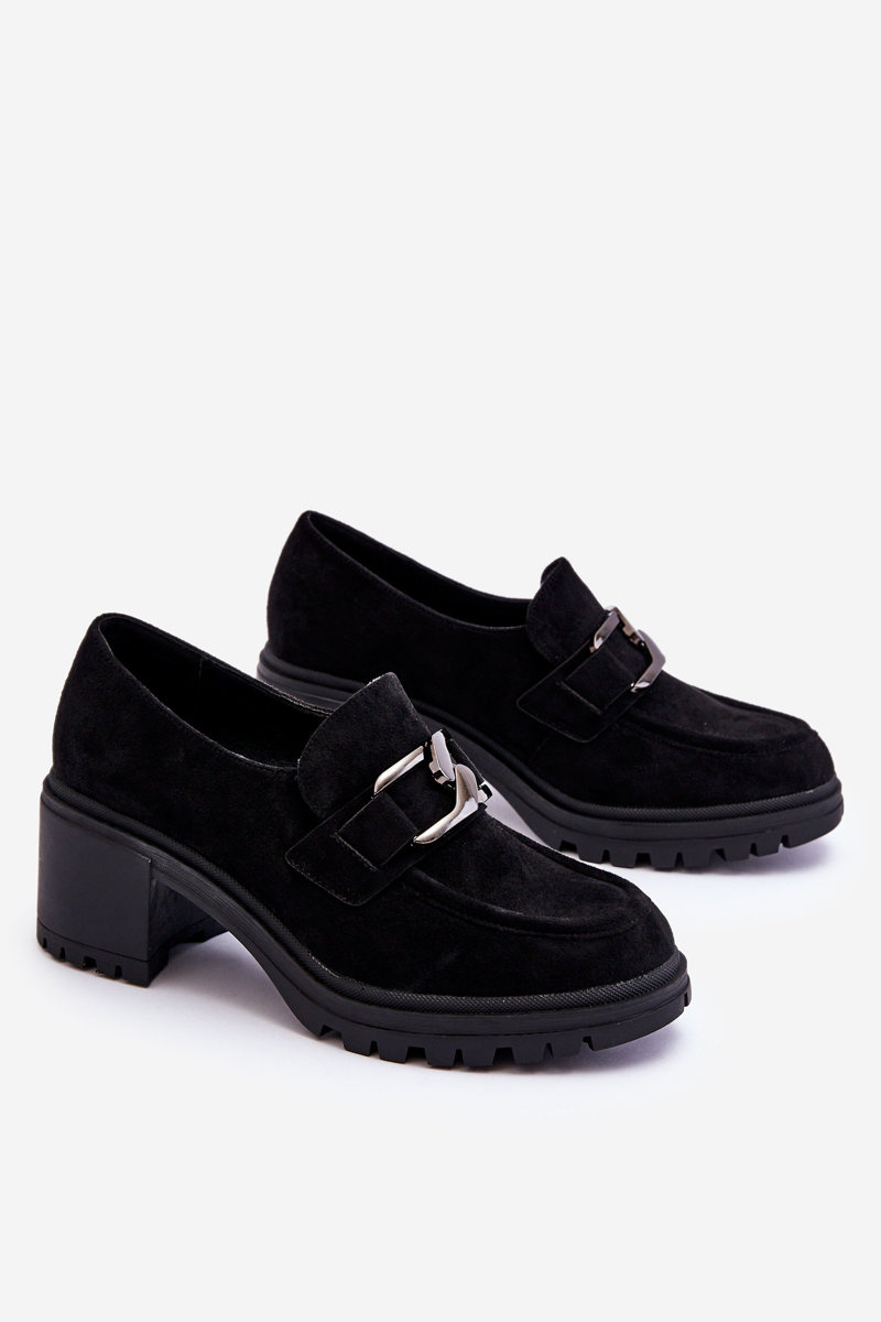 Fashionable women's shoes are set on a massive, stable heel in the form of a low heel. Made of high-quality suede ecological leather. They have plastic decorations on the front. The sole with grooves perfectly insulates from uneven, cold ground. The comfortable insole is made of natural leather. When choosing a size, please refer to the size chart.