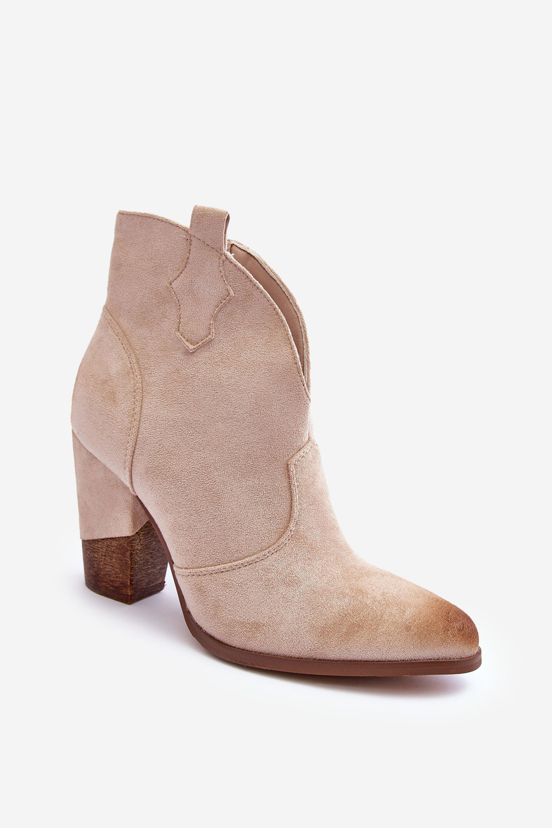 Suede Cowboy Boots On Heel Light Beige Tanner