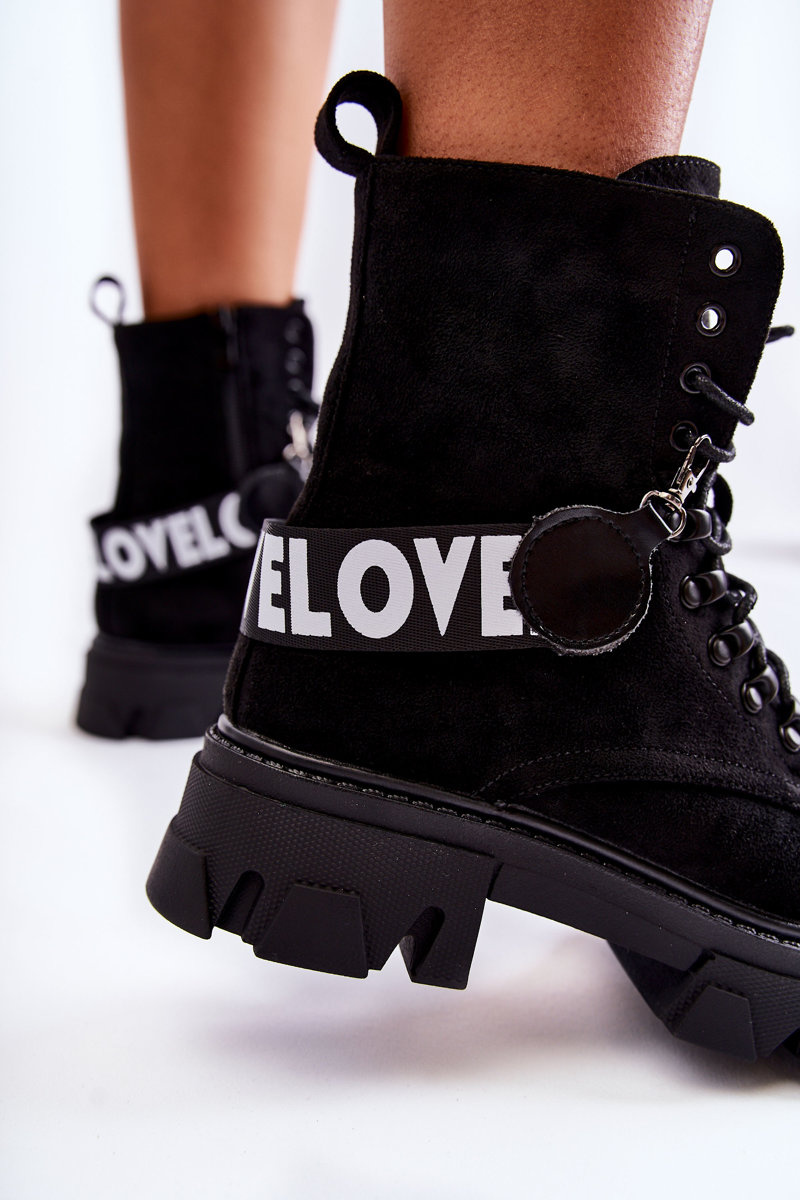Insulated boots - workers will be great during the fall season. They were made of eco suede. They have a delicately stiffened heel. A model with a classic binding and a zipper on the side of the upper. The boots have an additional detachable strap with the inscription. Set on a platform with a flat heel. The high upper and the interior with a blanket will provide excellent protection against the cold. When choosing a size, please use the size chart.