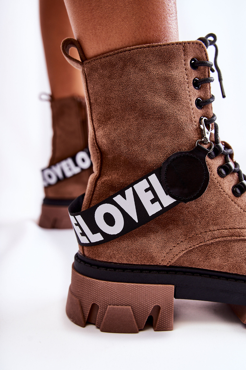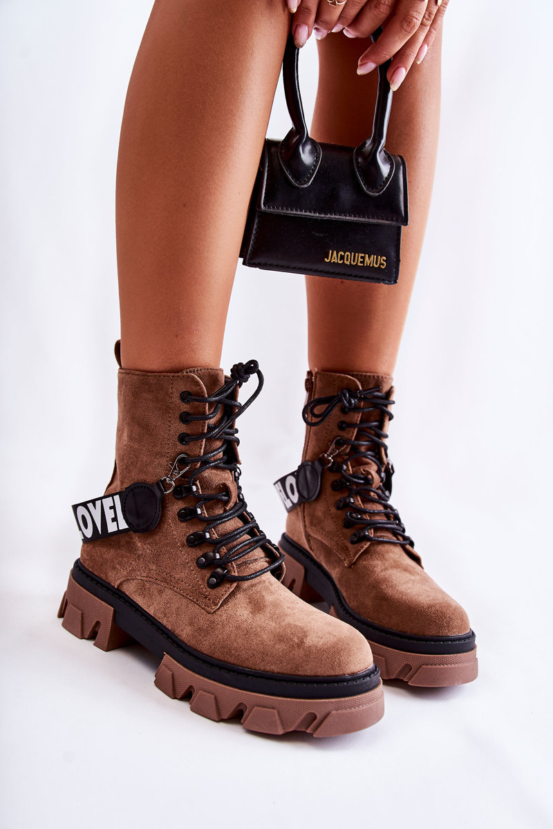 Insulated boots - workers will be great during the fall season. They were made of eco suede. They have a delicately stiffened heel. A model with a classic binding and a zipper on the side of the upper. The boots have an additional detachable strap with the inscription. Set on a platform with a flat heel. The high upper and the interior with a blanket will provide excellent protection against the cold. When choosing a size, please use the size chart.
