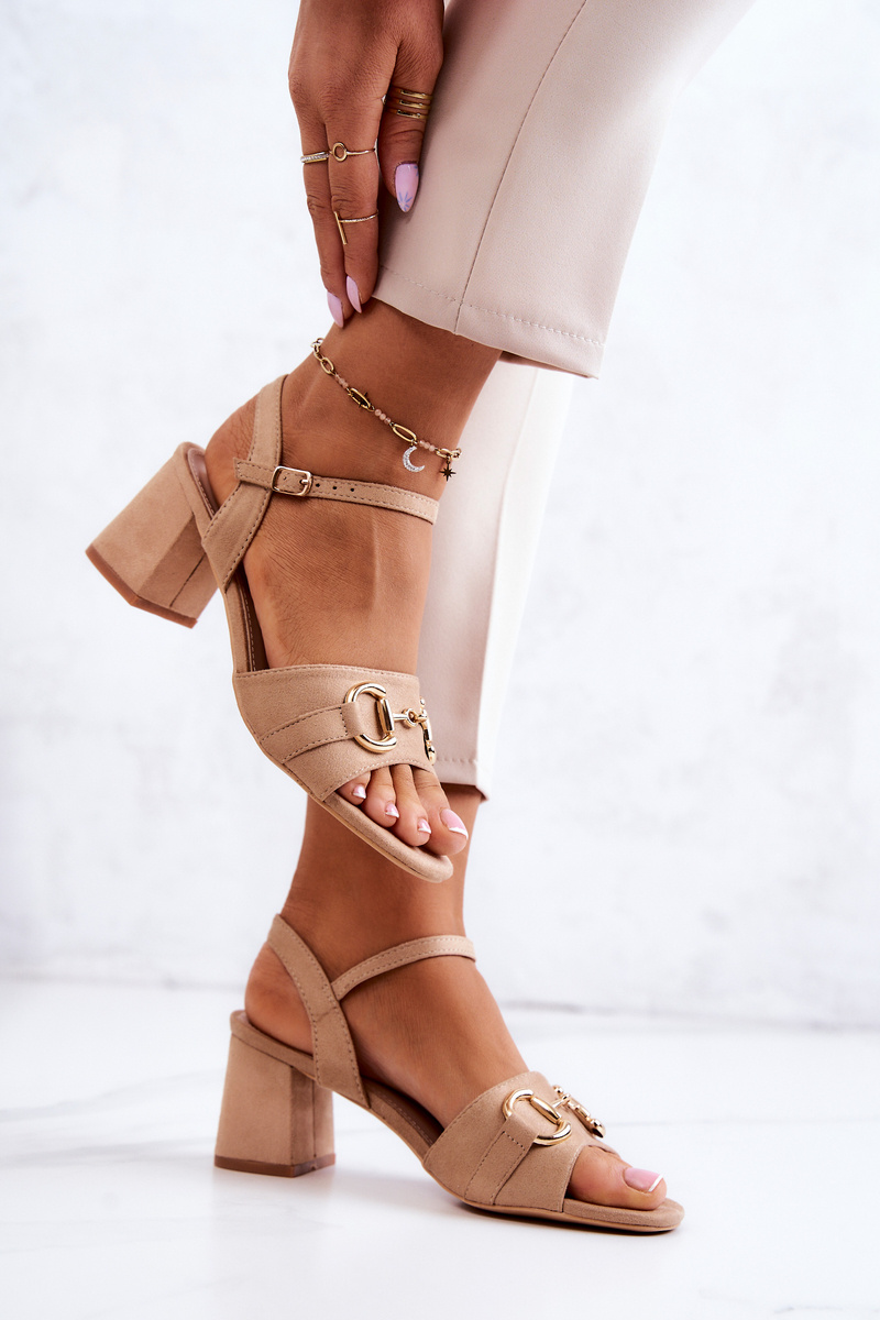 Elegant high-heeled sandals in the form of a post. Made of eco suede. They have a decorative element on the front of the footwear. The nose is open, rounded. Fastened around the ankle with a buckle with an adjustable strap. The soft Comfort Shoes insole made of eco leather and a comfortable heel ensure comfort. Plastic sole. Perfect for hot days, both with dresses, skirts and elegant trousers. Perfect for business meetings, family celebrations or a romantic walk. When choosing a size, please use the size chart.
