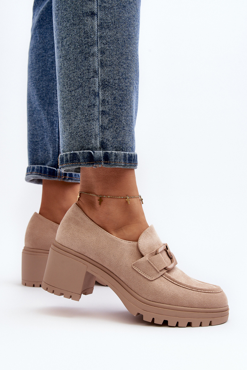Fashionable women's shoes are set on a massive, stable heel in the form of a low heel. Made of high-quality suede ecological leather. They have plastic decorations on the front. The sole with grooves perfectly insulates from uneven, cold ground. The comfortable insole is made of natural leather. When choosing a size, please refer to the size chart.