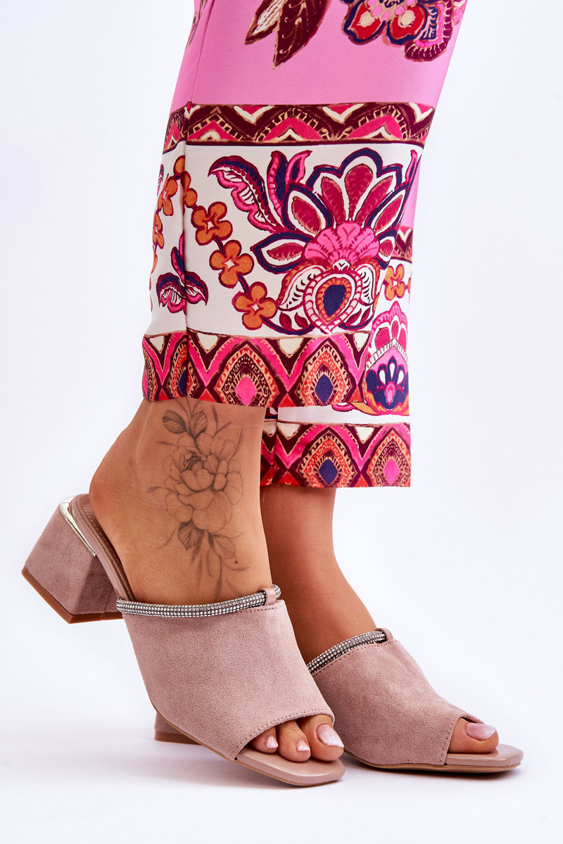 Suede High Heel Slippers S.Barski KV-612-2 Beige