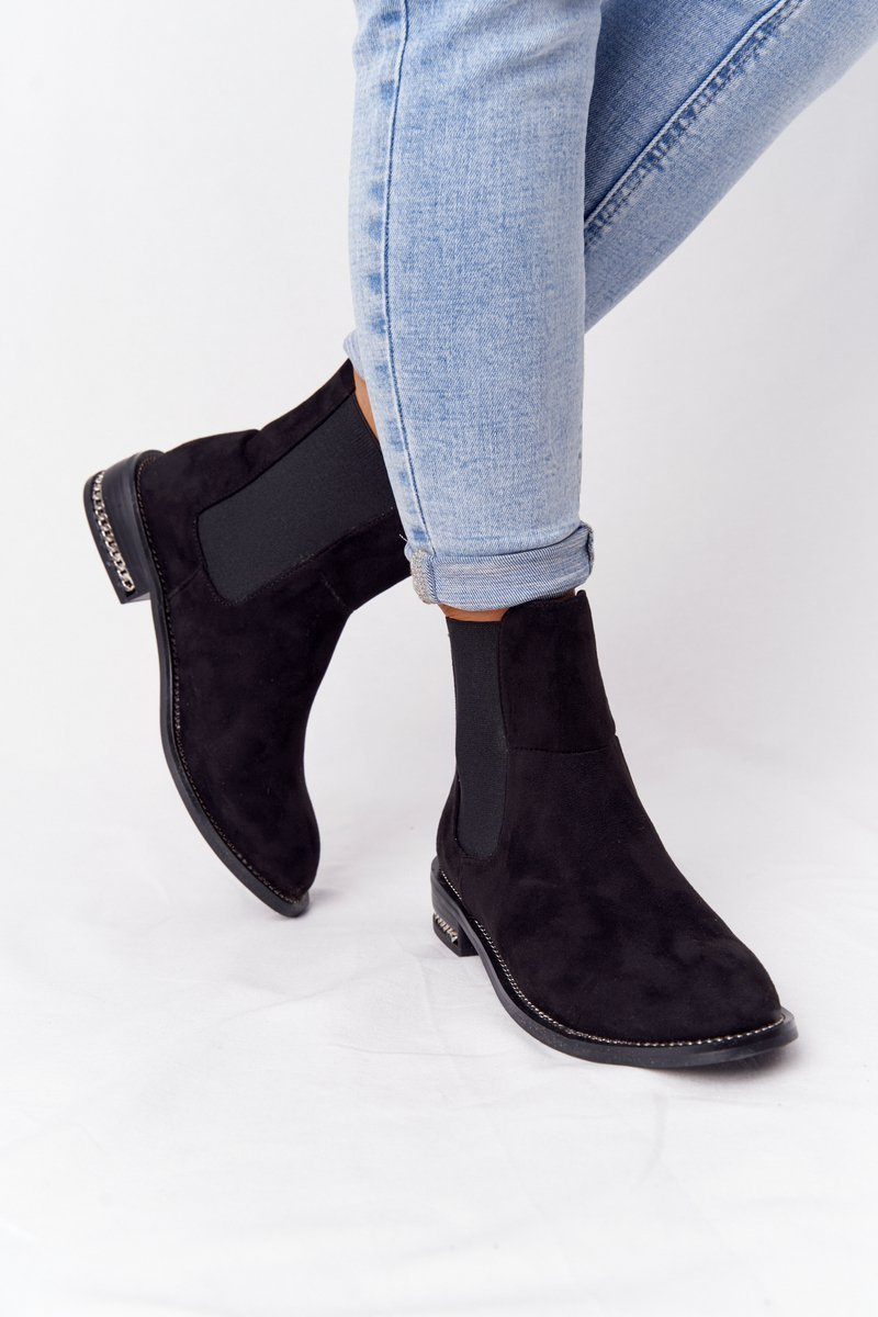 Unique Chelsea boots made of eco leather, decorated with rhinestones and a chain. The interior is covered with a warm and pleasant to the touch blanket. Be sure to check out our entire range of boots! When choosing a size, please use the size chart.