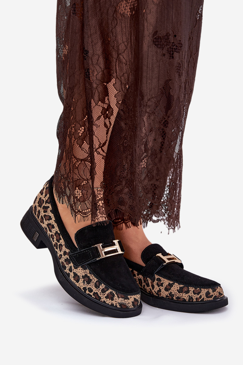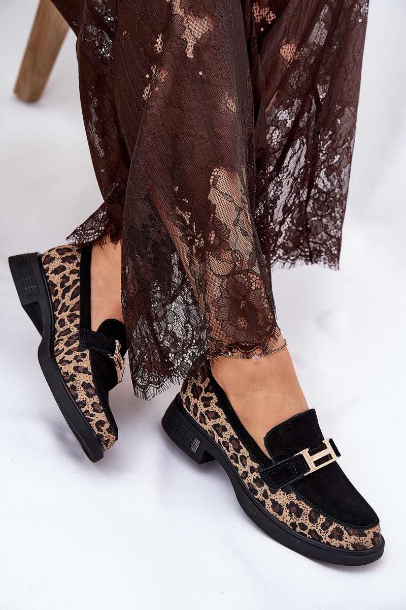 Women's moccasins from the brand Vinceza, made of eco-suede, combine elegance with a fashionable style. Set on a flat heel, they provide comfort all day long. They stand out with a trendy leopard print that gives them a bold character, while the subtle decorative detail at the front adds unique charm. The rounded toes ensure comfort, and the overall design fits perfectly into stylish, elegant outfits. These moccasins will be an excellent choice for both everyday and more formal outfits, combining functionality with a fashionable look. When choosing a size, please refer to the size chart.