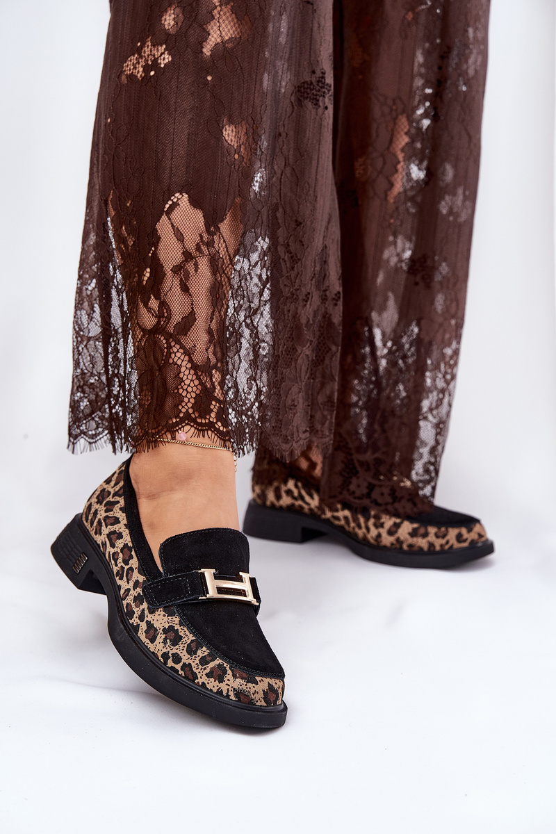 Suede Ladies Moccasins Panther Black Vinceza 66791