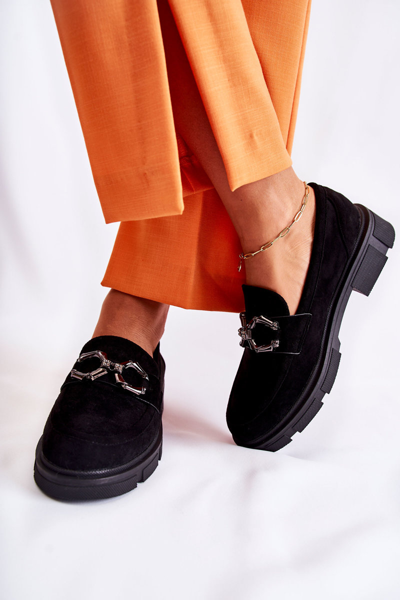 Fashionable women's shoes are made of high-quality eco suede. On the front there is a characteristic ornament with delicate cubic zirconia. These shoes have a delicate platform and a flat heel. The sole will isolate you from the cold ground. This model will work in many styles! Comfortable and fashionable women's loafers that you should have in your wardrobe. When choosing a size, please use the size chart.