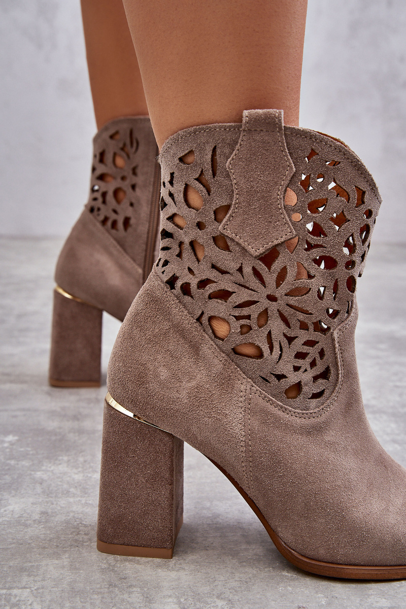 Suede Openwork Boots Lewski Shoes 3264 Bright brown