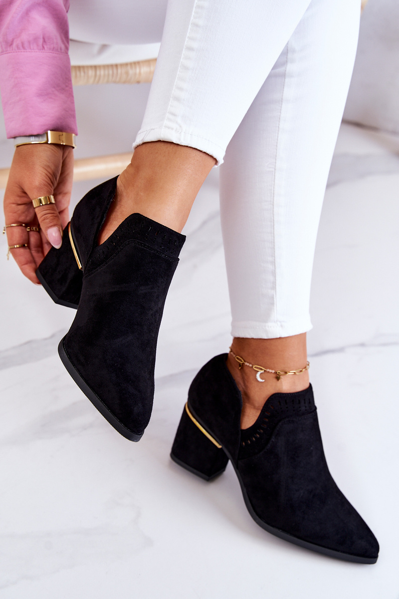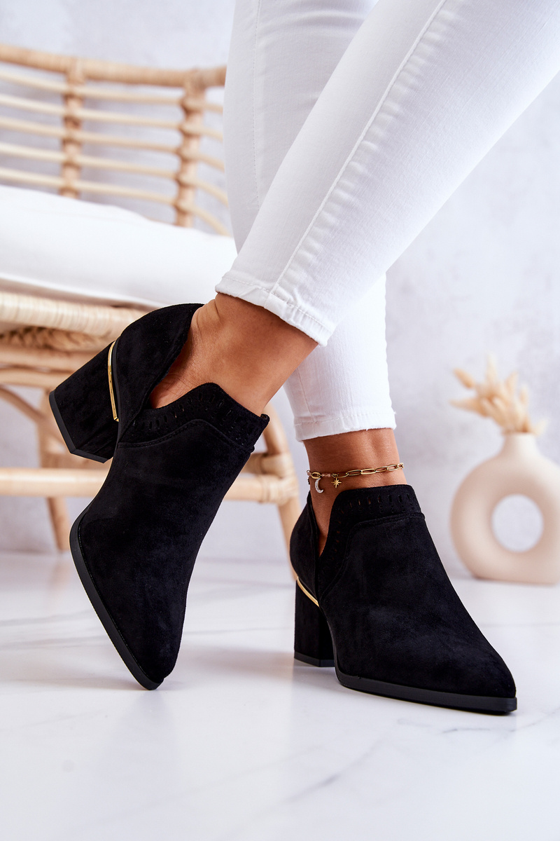 A fashionable cowboy-style cut made of eco suede with an openwork pattern. The shoes have a pointed toe and a stable heel in the form of a post. Boots will fit perfectly into spring and summer stylizations. They have an eco leather insert inside. You absolutely must have them! When choosing a size, please use the size chart.