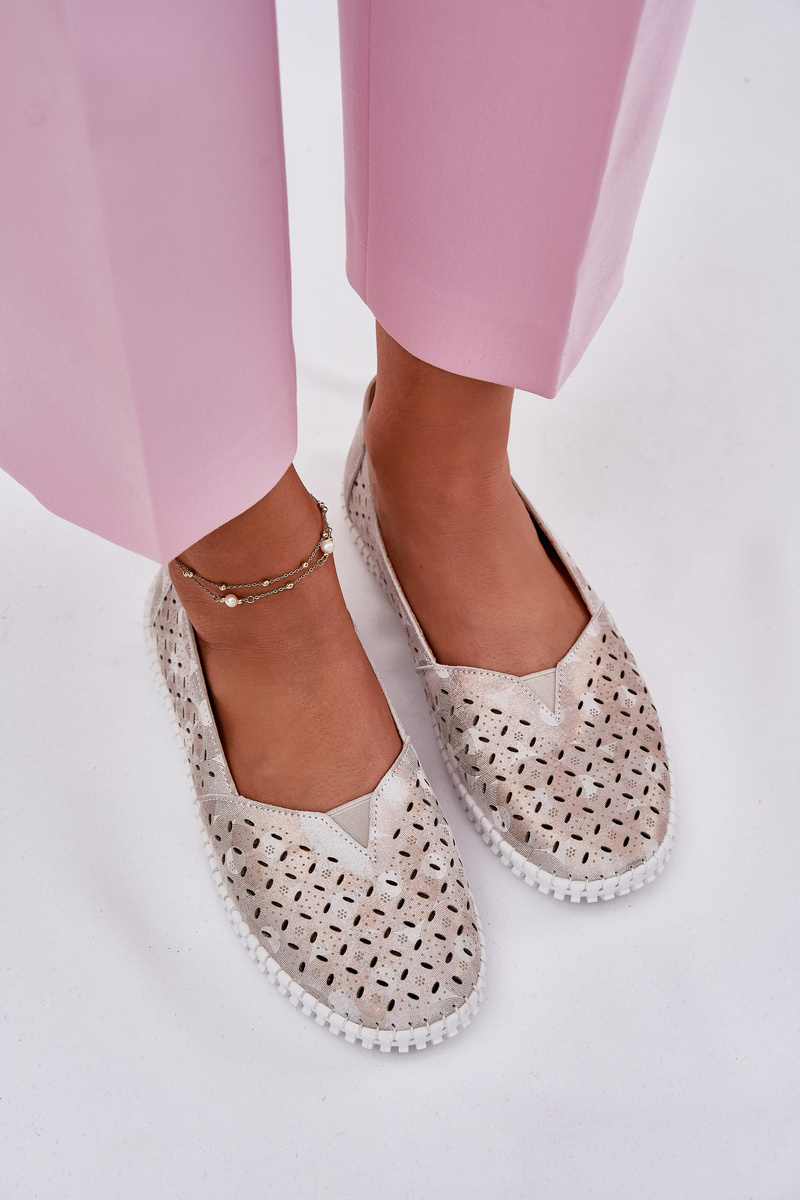 Suede perforated women's loafers gold-gray Chulieta