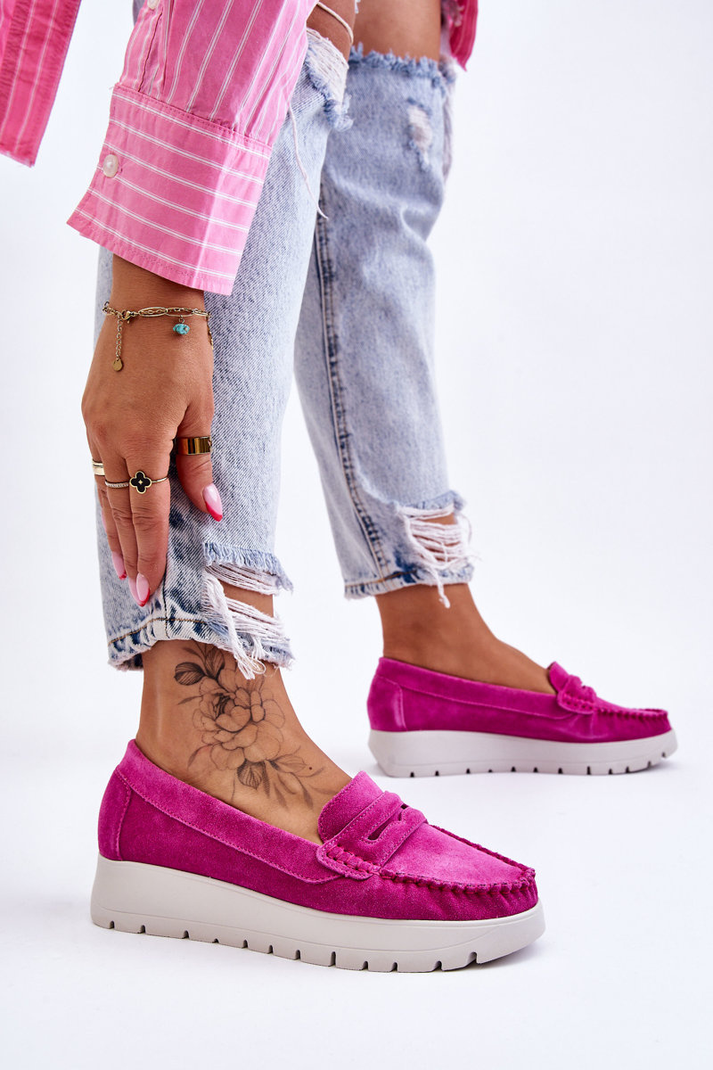 Women's loafers made of natural leather with a decorative stripe at the front. The heel counter has been stiffened, which will allow for proper stabilization of the foot. The shoes were placed on the platform. This model has a soft insole with perforation. Loafers are the perfect shoes for many styles! You absolutely should have them! When choosing a size, please refer to the size chart.