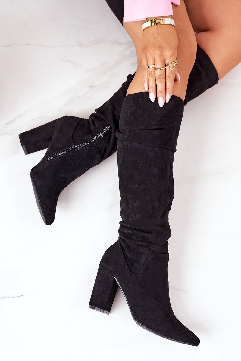 Beautiful boots on the post with a pointed toe. The shirred upper is made of soft eco suede. When choosing a size, please use the size chart.