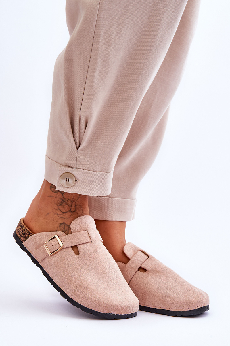 The flip flops are set on a cork platform with a plastic sole. The slippers are made of eco suede. They have a profiled insole made of eco suede. In addition, they were decorated with an adjustable strap with a buckle. You can also use flip flops with a built-in toe instead of slippers. When choosing a size, please refer to the size chart.