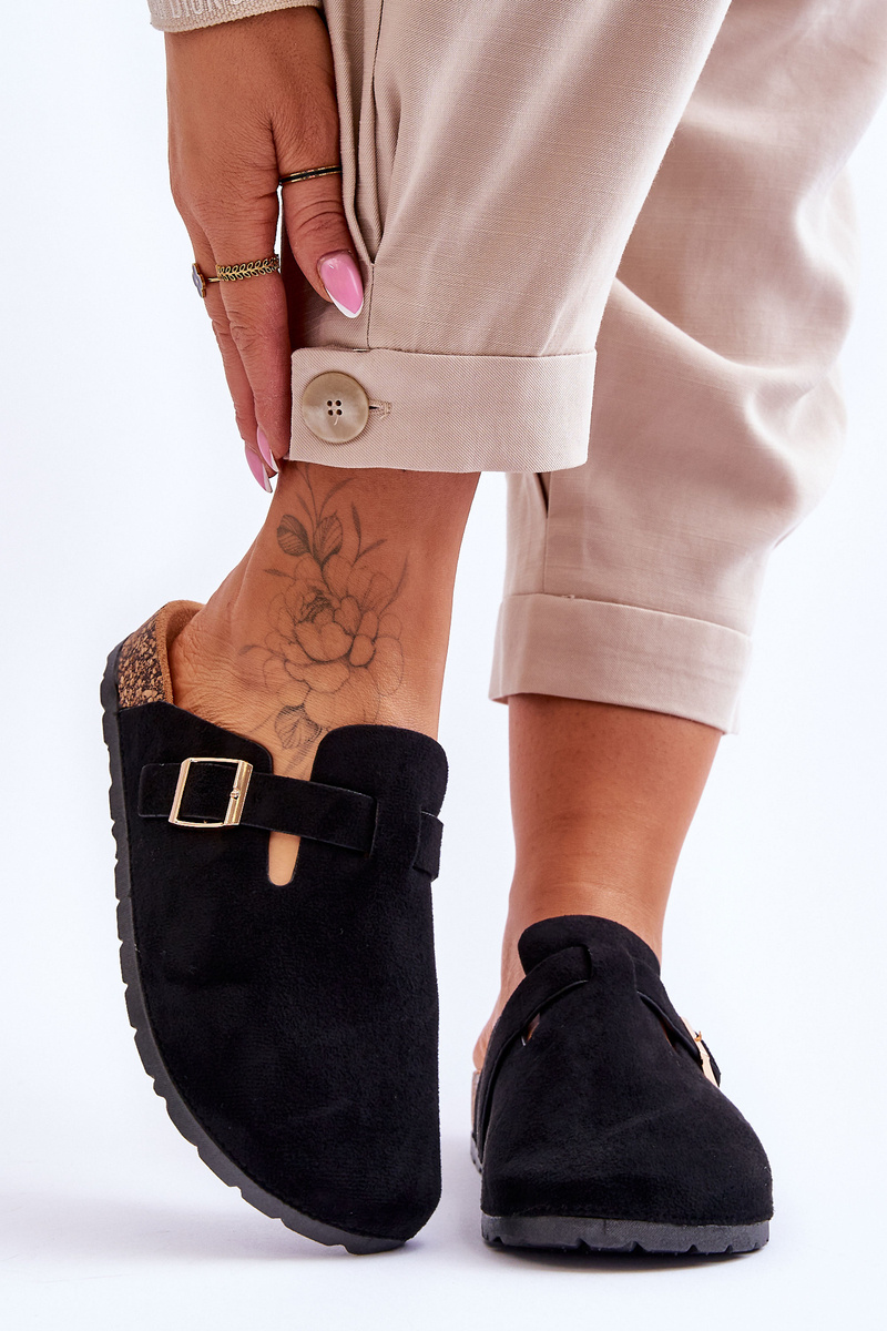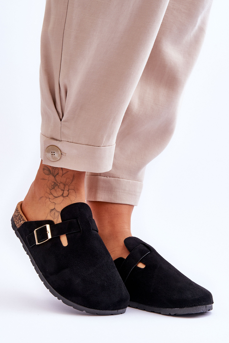 The flip flops are set on a cork platform with a plastic sole. The slippers are made of eco suede. They have a profiled insole made of eco suede. In addition, they were decorated with an adjustable strap with a buckle. You can also use flip flops with a built-in toe instead of slippers. When choosing a size, please refer to the size chart.