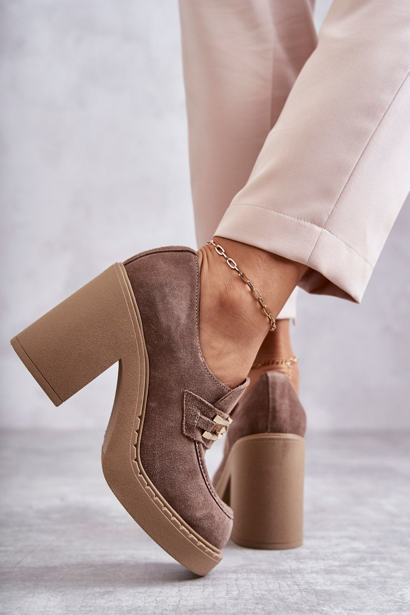 Wonderful high heels in the form of a massive post with a platform. The upper and the insole are made of natural leather. The sole made of rubber material is non-slip. The decoration on the front adds elegance to these shoes. This model has a stiffened heel counter, which additionally stabilizes the foot. There is an elastic band under the tongue, which will make the shoe fit perfectly to the foot. When choosing a size, please use the size chart.