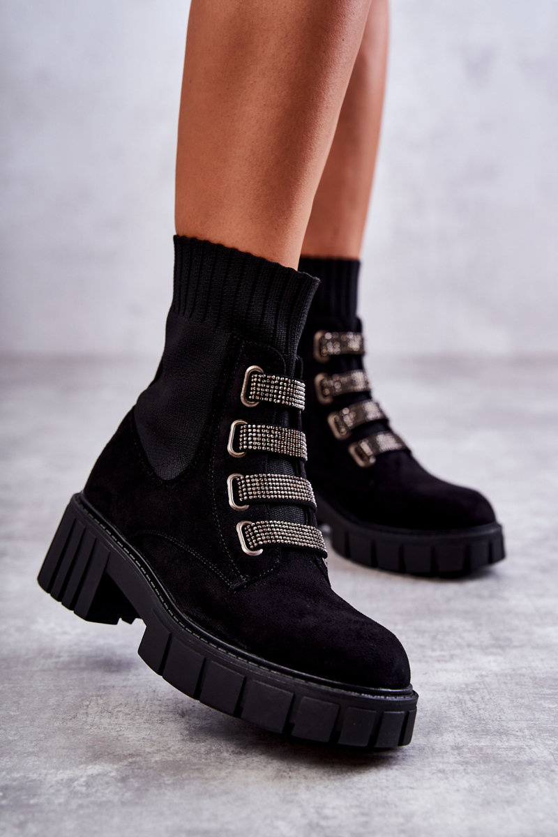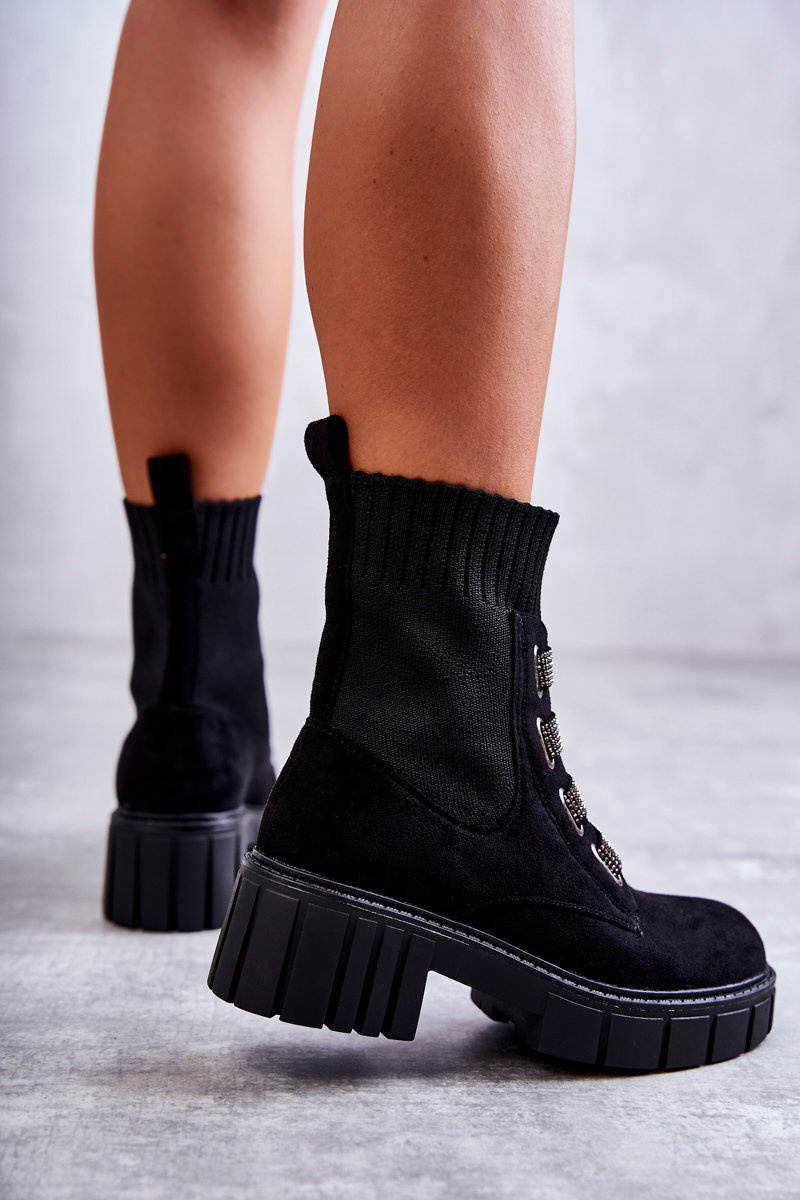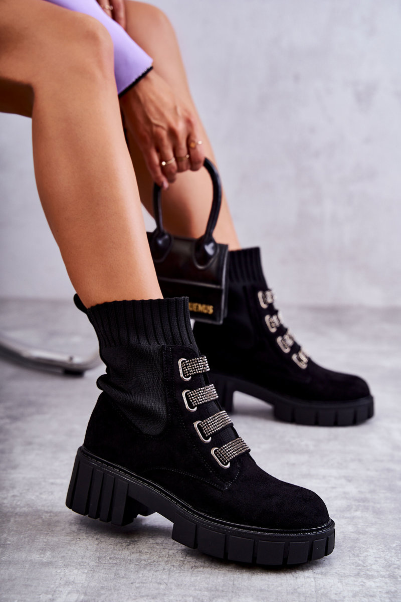 Fashionable boots - workers have won the hearts of many women! This model was made of a combination of pleasant to the touch eco suede and textile material. The boots are slip-on, with a delicate welt at the top of the upper. This model is insulated with a footwear blanket only at the height of the foot. Stiffened heel. Set on a massive platform with a flat heel. When choosing a size, please use the size chart.
