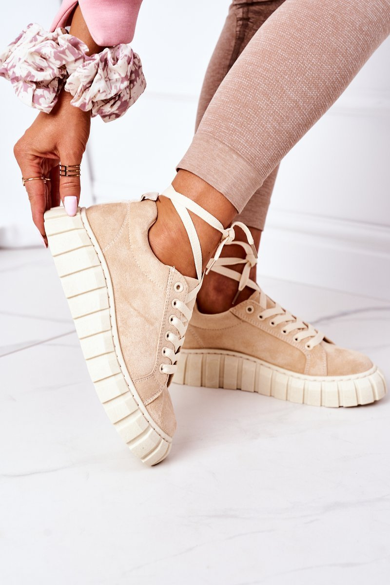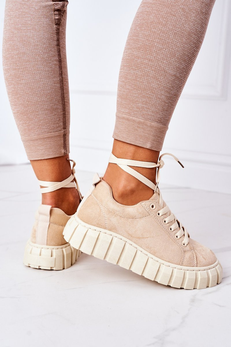 Fashionable sneakers on a large, rubber platform. The shoes fit the shape of the foot well, have an upper made of eco suede and a non-slip sole. Be sure to check out our entire collection of sneakers! When choosing a size, please use the size chart.