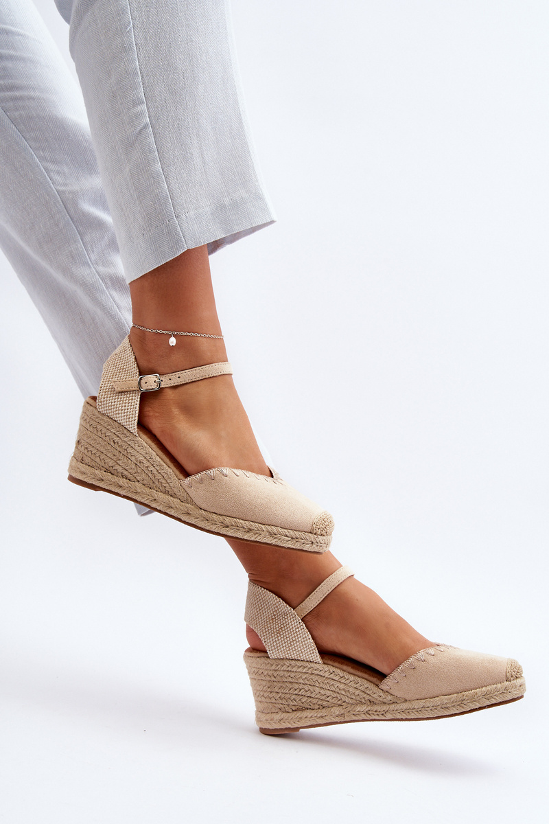 Suede Wedge Espadrille Sandals with Woven Detail Beige Raylin