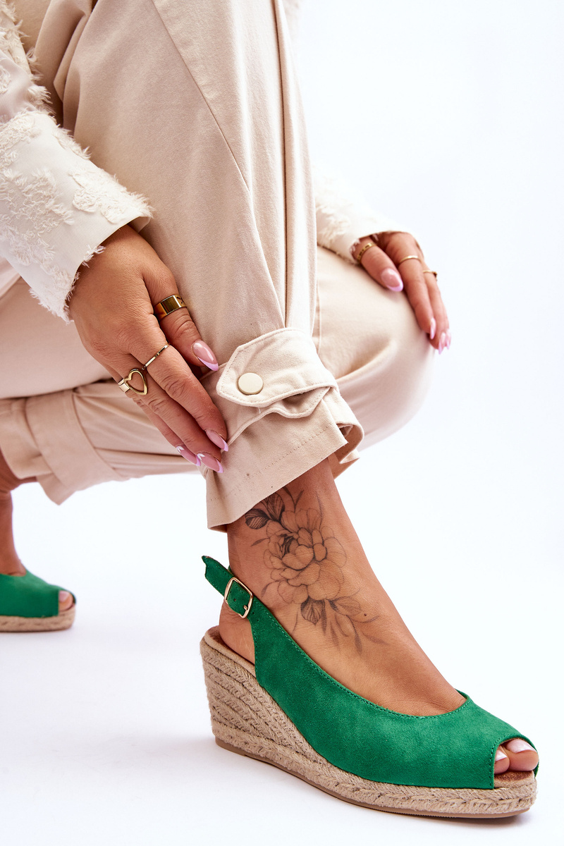 Women's sandals are made of eco suede. They have an adjustable strap with a buckle. The sandals were placed on a wedge decorated with jute braid. The sole is rubber and non-slip. The soft, eco-suede insole will take care of your comfort and convenience. Sandals are perfect for summer stylizations. When choosing a size, please refer to the size chart.