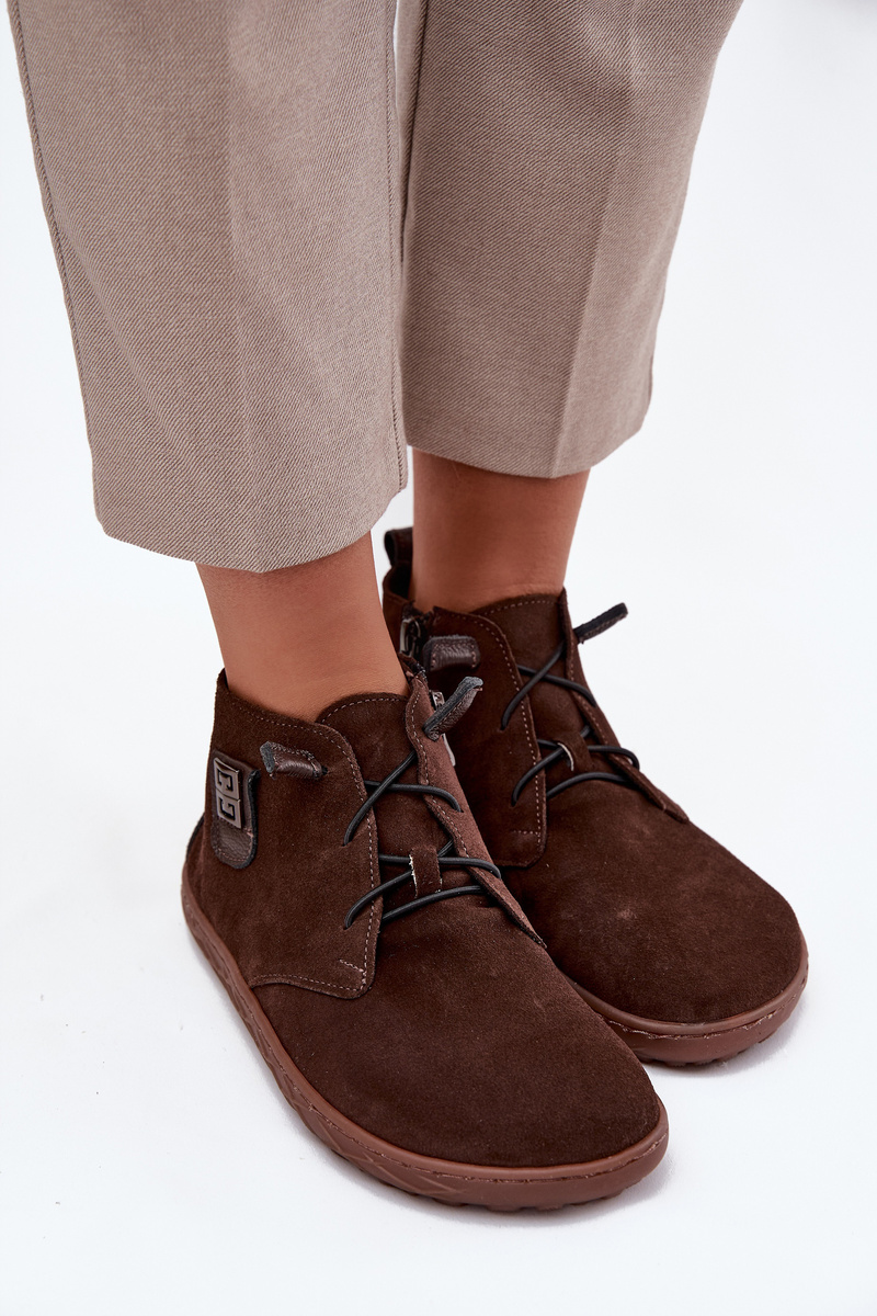 Suede Women's Barefoot Loafers with Decorative Detail Zazoo 30072 Chocolate