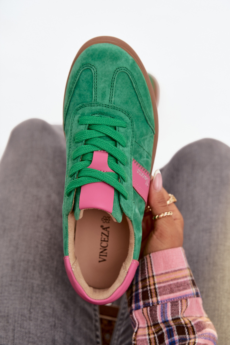Vinceza women's sneakers combine comfort with a fashionable urban style. Made from genuine suede, they offer an elegant look while maintaining material durability, and the rubber sole provides good grip on various surfaces. Rounded toes and a soft leather insole ensure all-day comfort, while a subtle detail with the inscription “Vinceza” on the side strap adds character and emphasizes the brand touch. Perfect for casual and more elegant outfits. When choosing your size, please refer to the size chart. When choosing a size, please refer to the size chart.