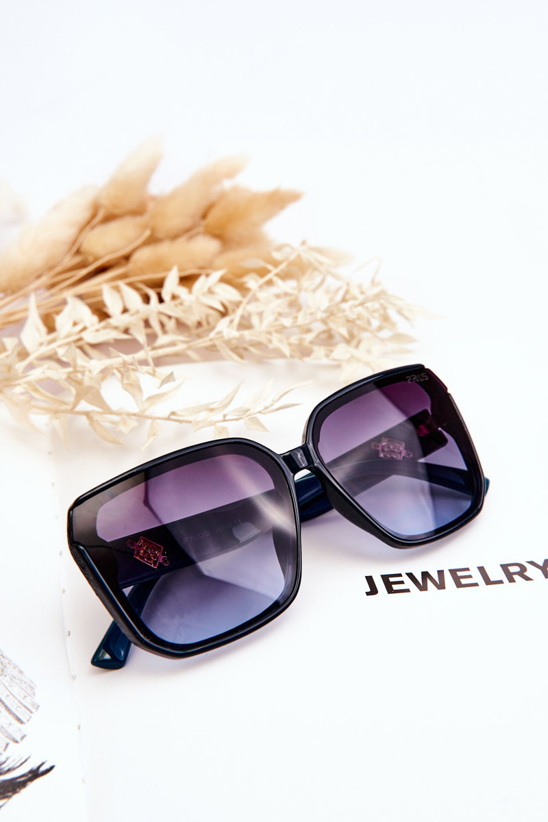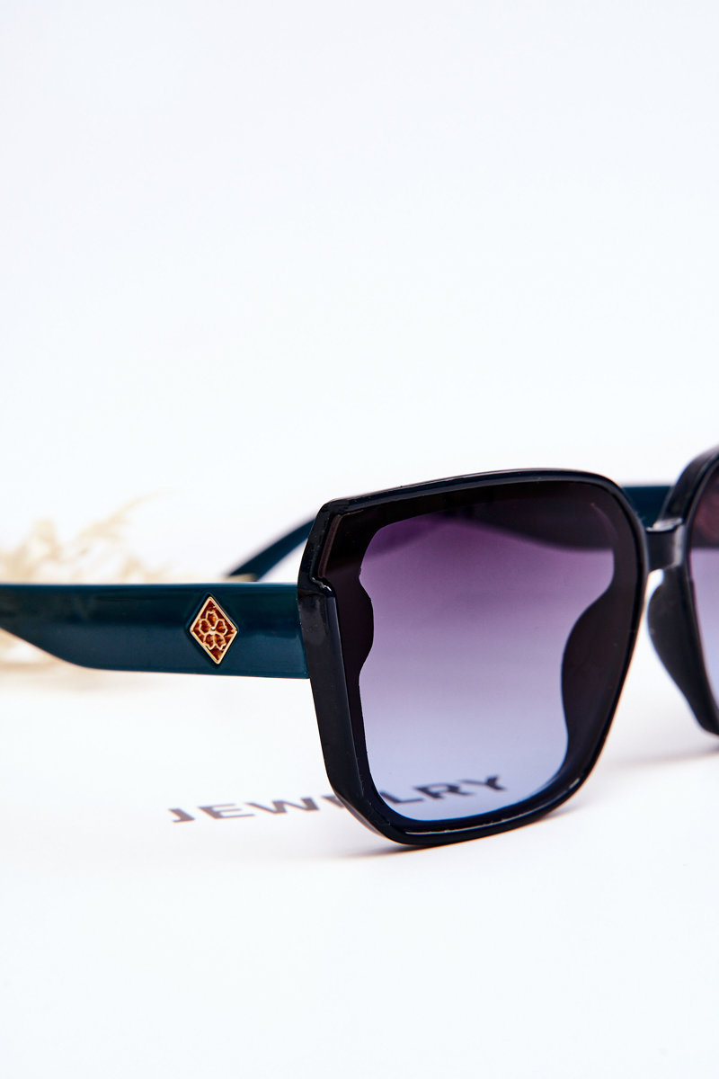 Classic sunglasses are made of plastic. They have decorations on the temples in the form of a diamond with a flower. Wayfarer style model. These glasses are perfect for sunny days, thanks to the UV filter. Information from the manufacturer: UV protection, category 3.