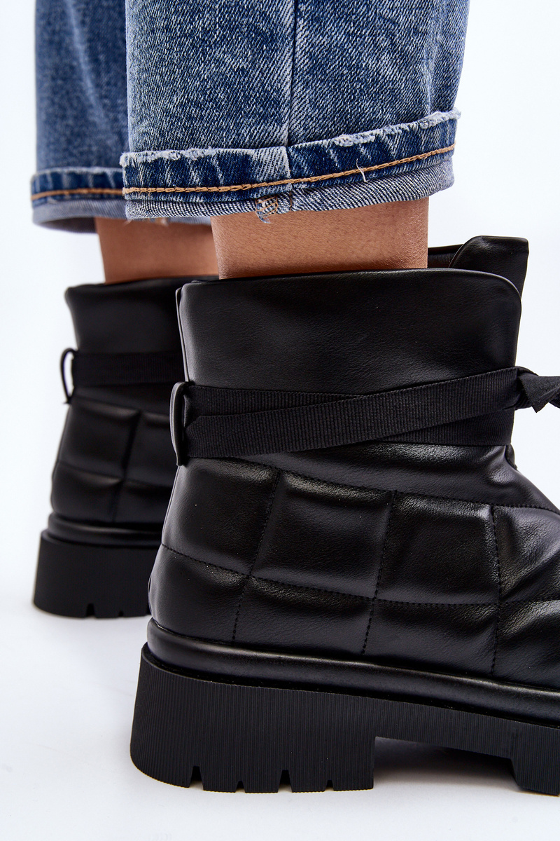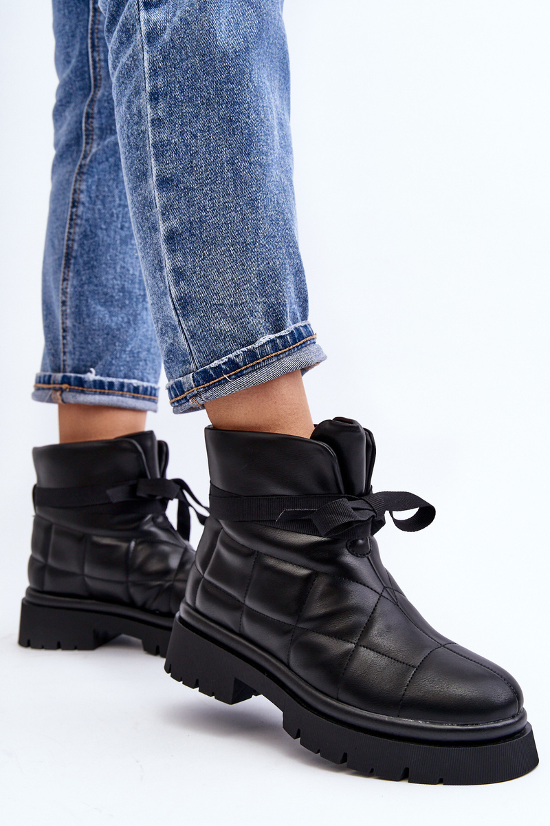 Warm and trendy ankle boots made of eco leather. Set on a flat, stable heel. Slip-on model with ankle-high shaft. The inside is lined with fur. Additionally, the heel counter is reinforced. Perfect for cold days! When choosing a size, please refer to the size chart.