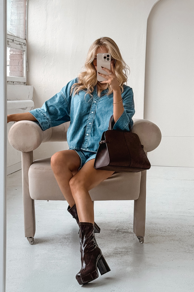 Women's ankle boots made from eco leather. They feature a shiny finish and decorative stitching on the upper, adding character. Set on a stable block heel and a practical platform, they visually slim the silhouette while providing comfort. The shoes are fastened with a zipper, making them easy to put on and take off. The interior is insulated at the foot level, making them suitable for cooler days. An ideal model for styling with both pants and dresses. When choosing a size, please refer to the size chart.