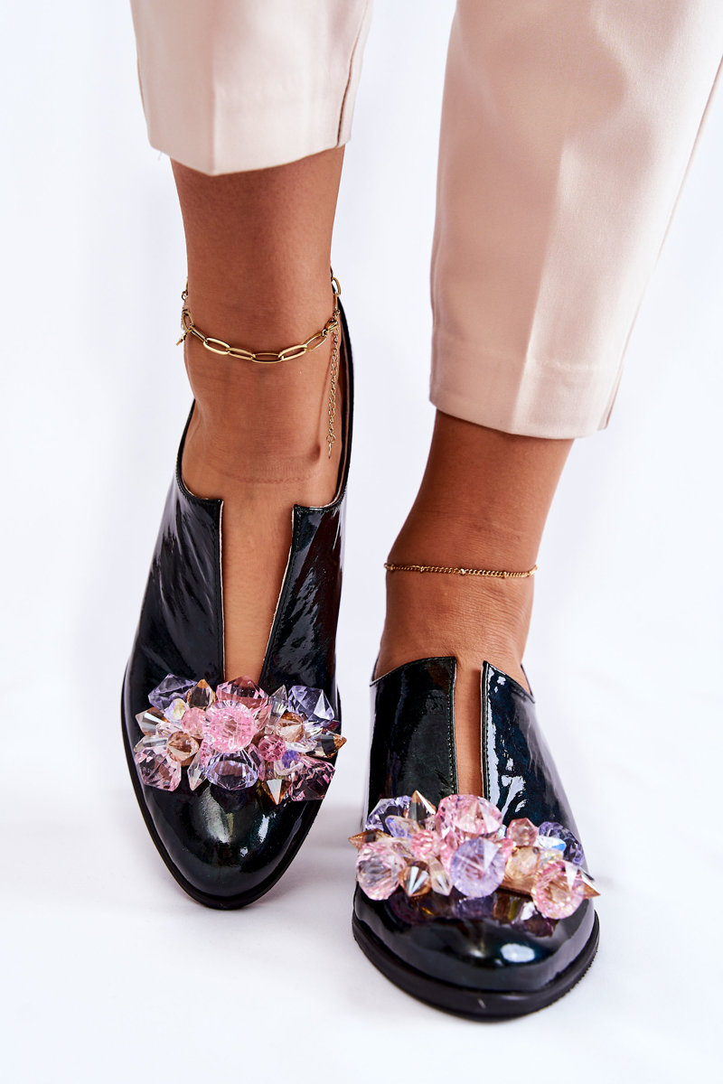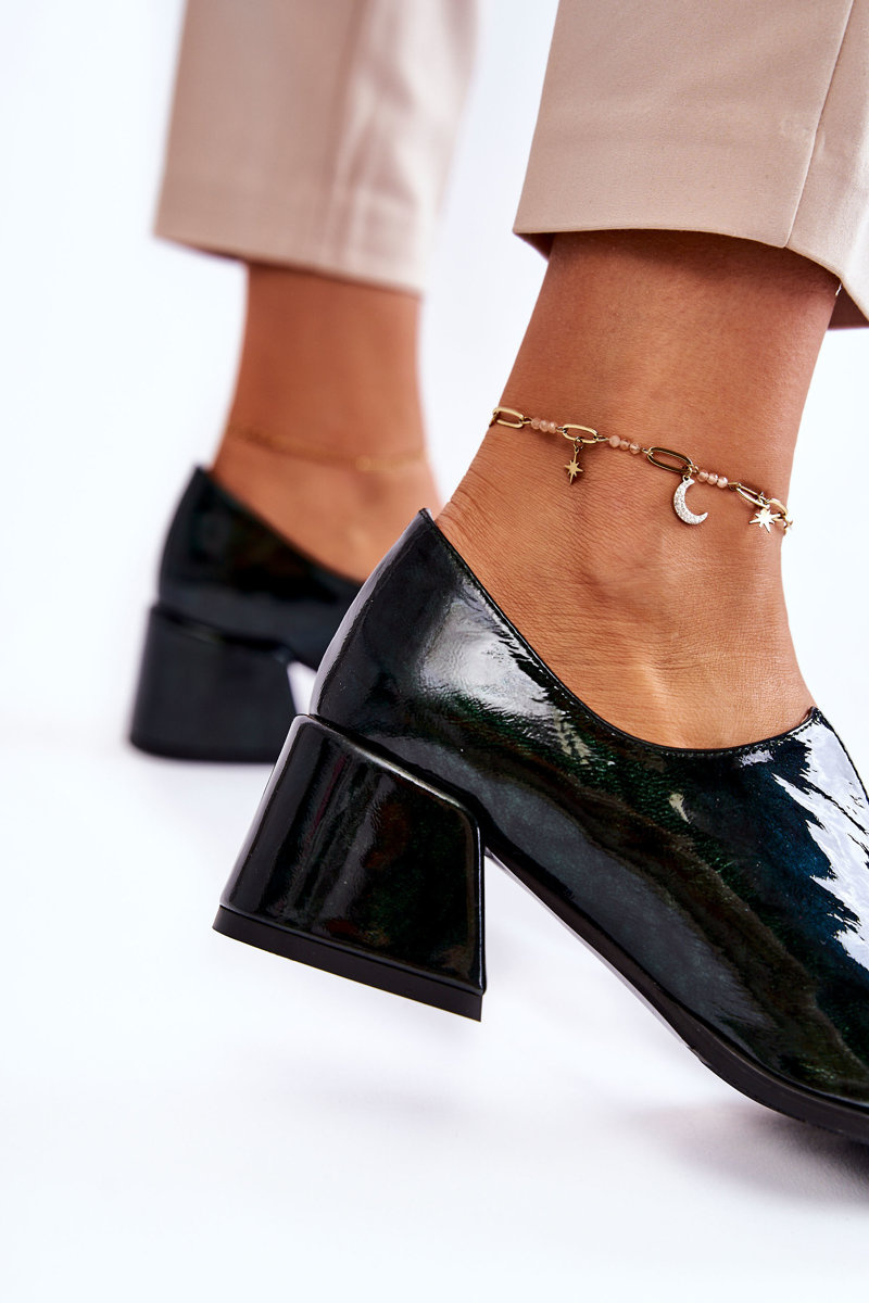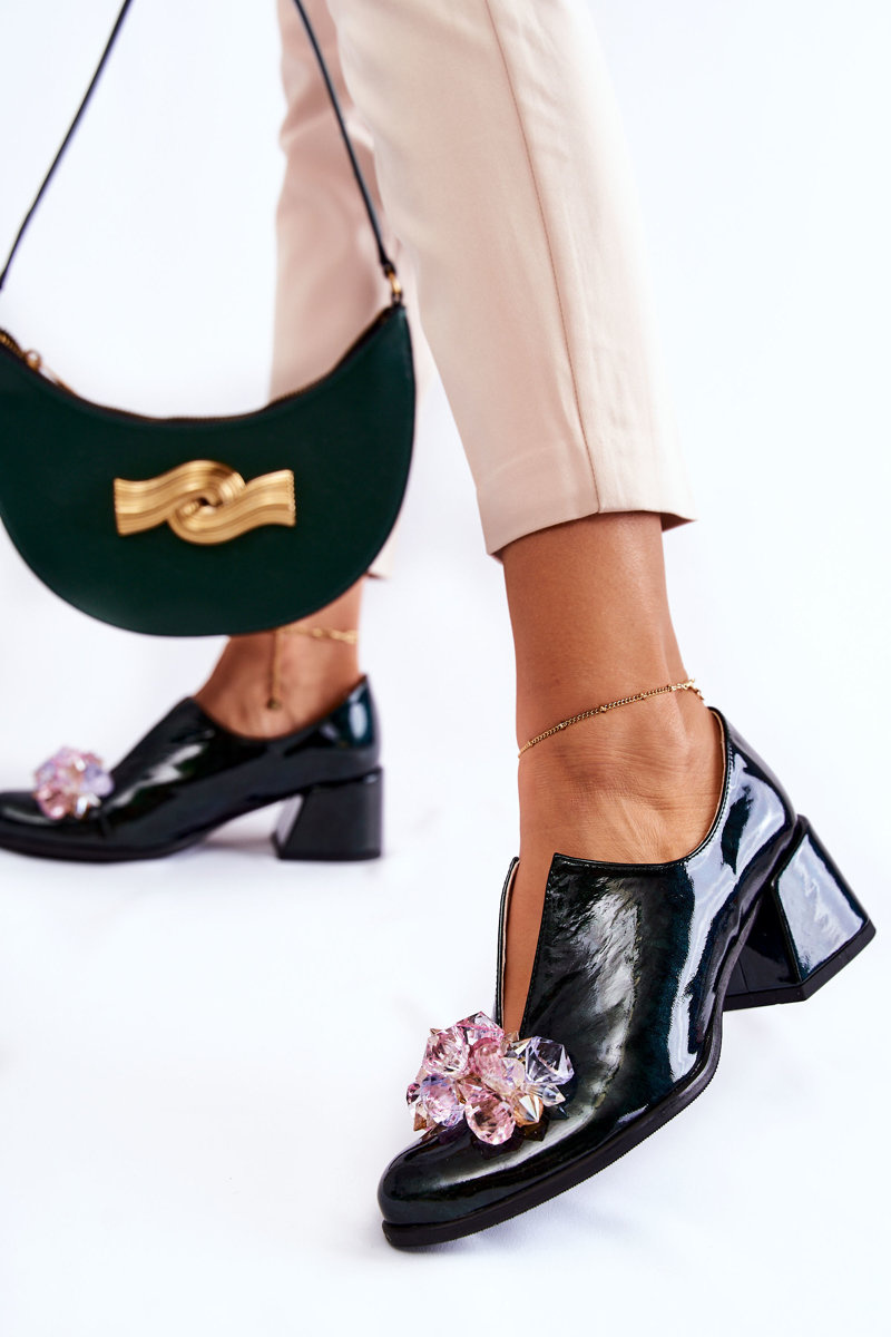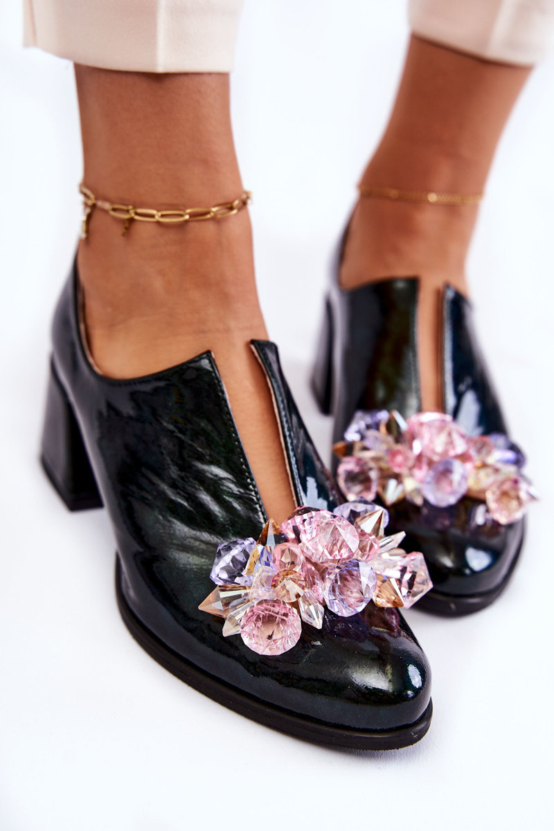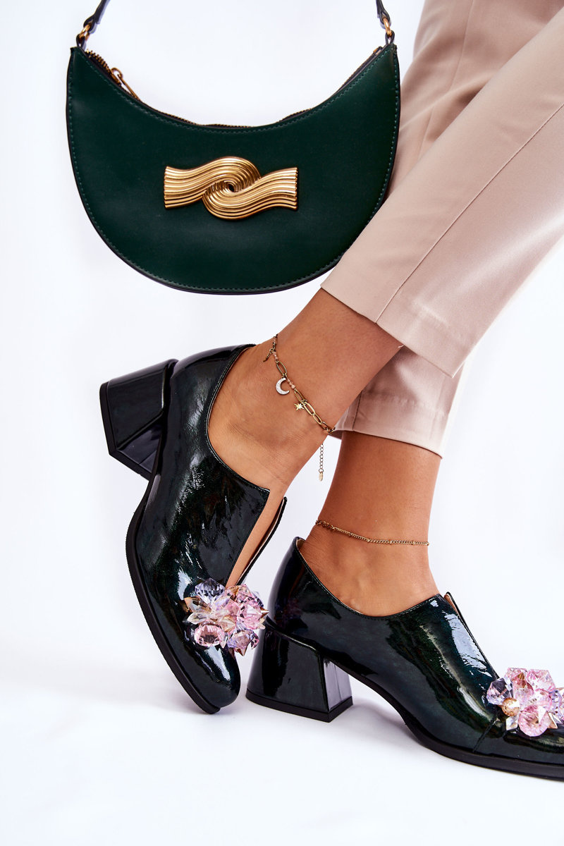 Varnished Mosaic Shoes With Transparent Decoration Green Delaver