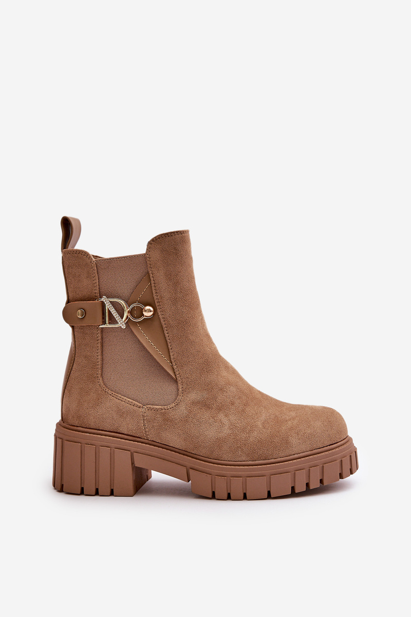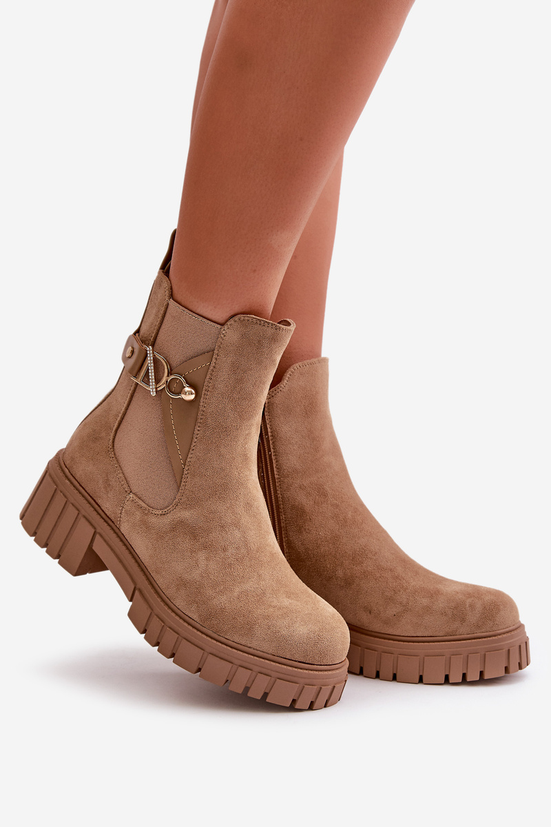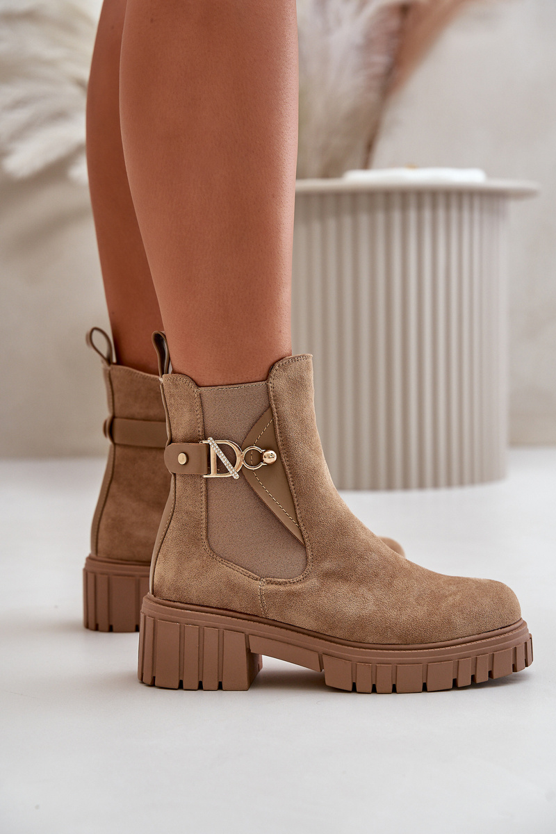 Warm Ladies Boots With Gold Detail Eco Suede Beige Bervena
