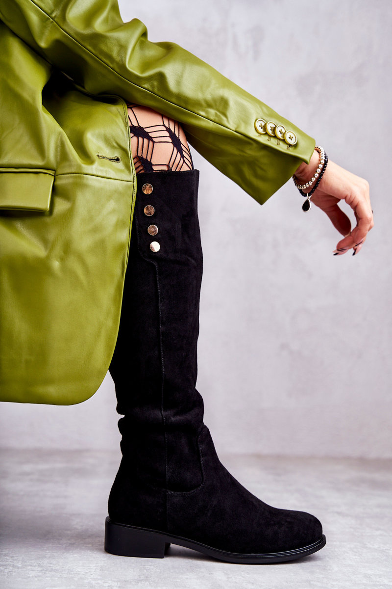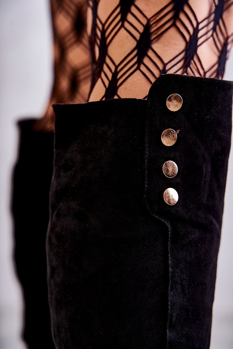 Classic women's boots are made of eco suede pleasant to the touch. They have an irregular upper decorated with studs at the top. Additionally, the heel counter is stiffened. The boots are insulated inside with a shoe blanket. Full-length zipper uppers. Set on a flat heel. You will surely use them for many styles. When choosing a size, please use the size chart.