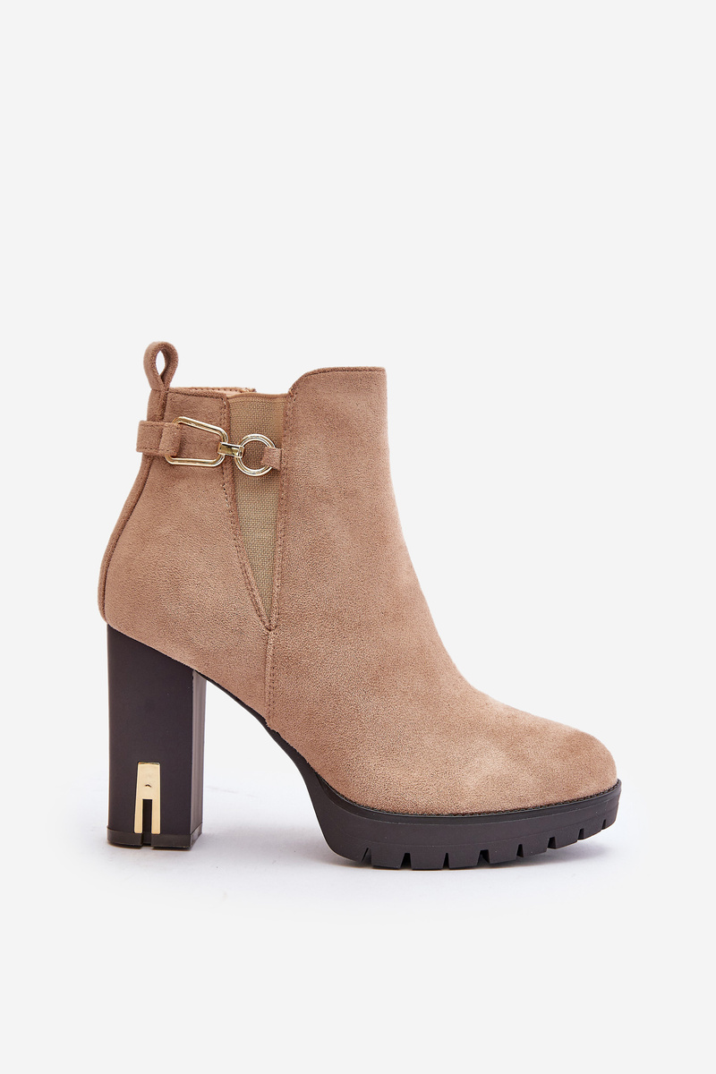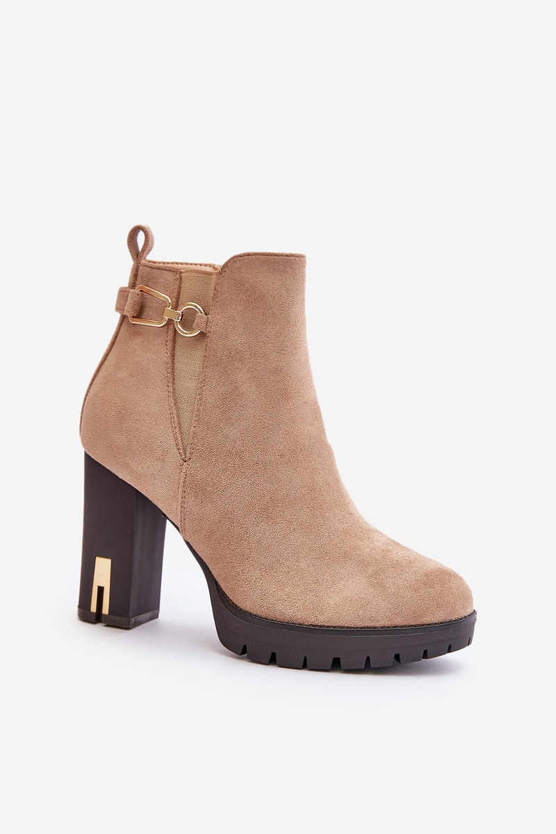 Warm Women's Ankle Boots with High Block Heel Beige Terisanna