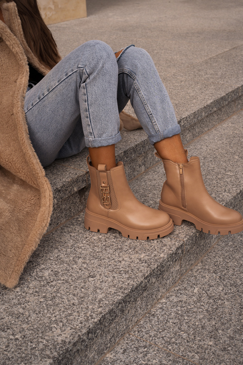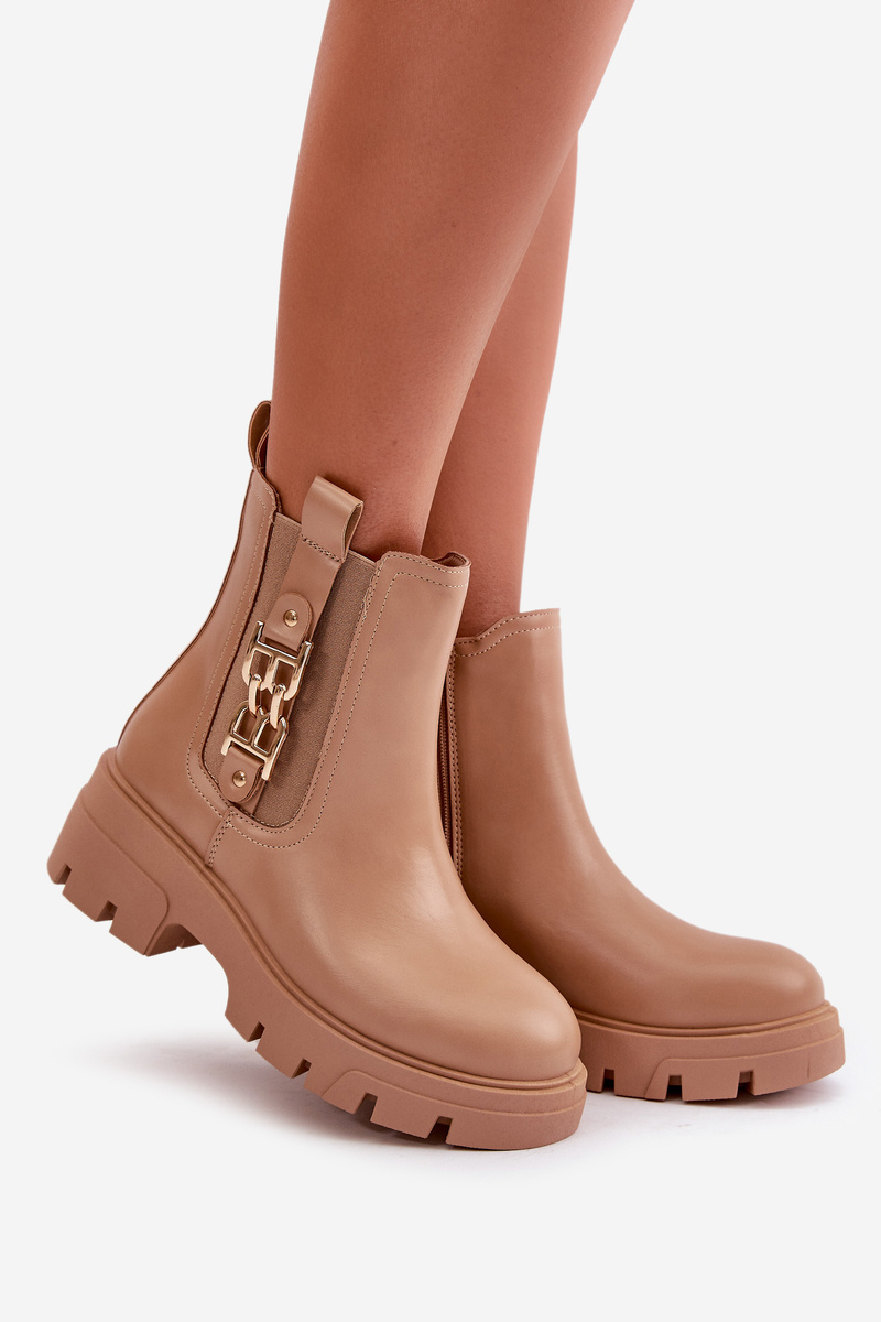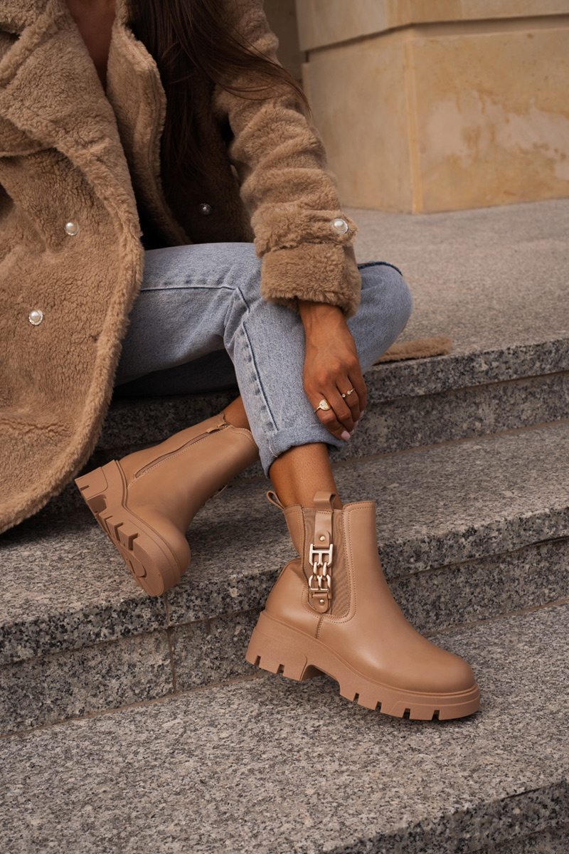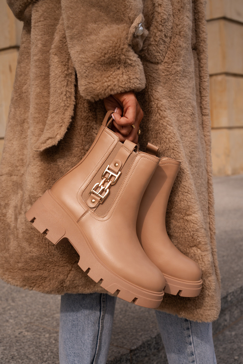 Warm Women's Boots Eco Leather With Golden Decoration Beige Erivianes