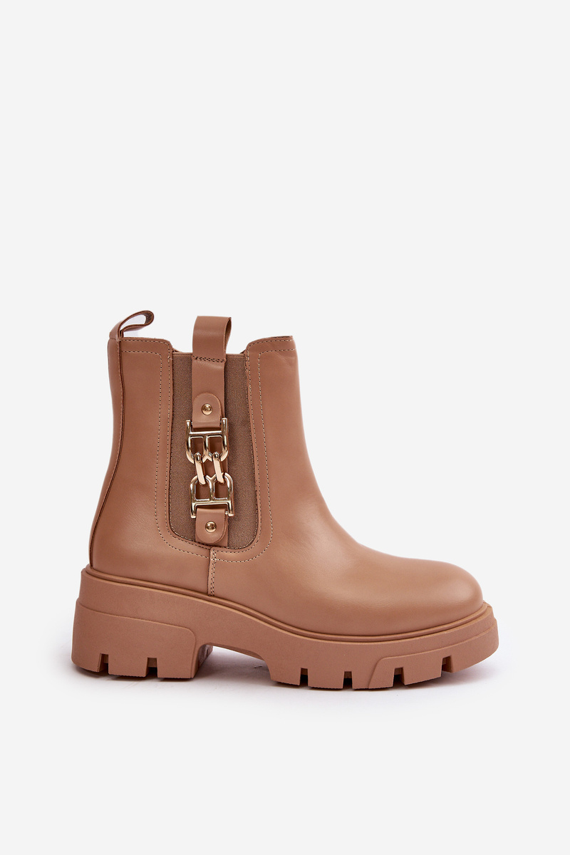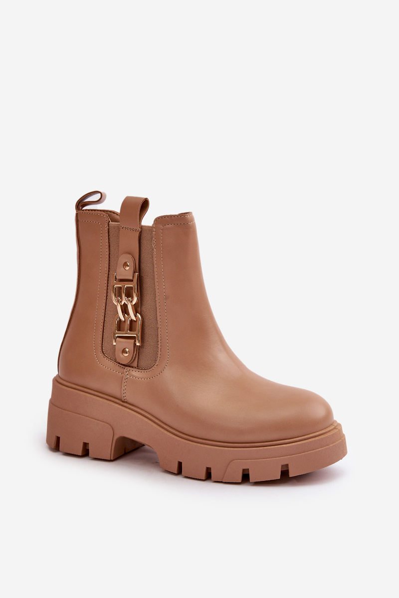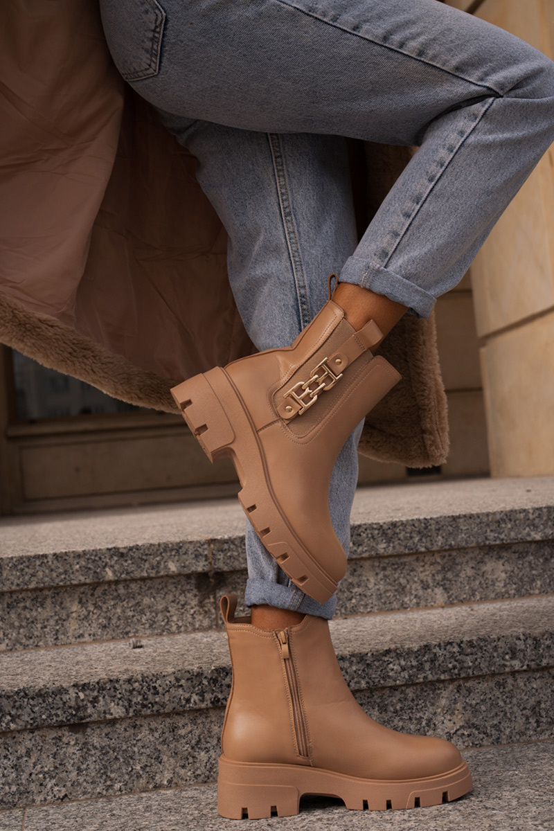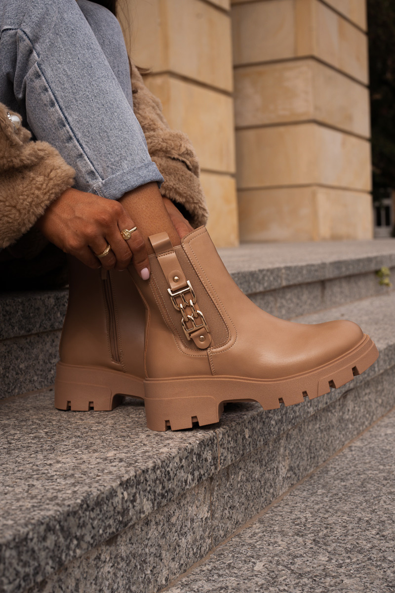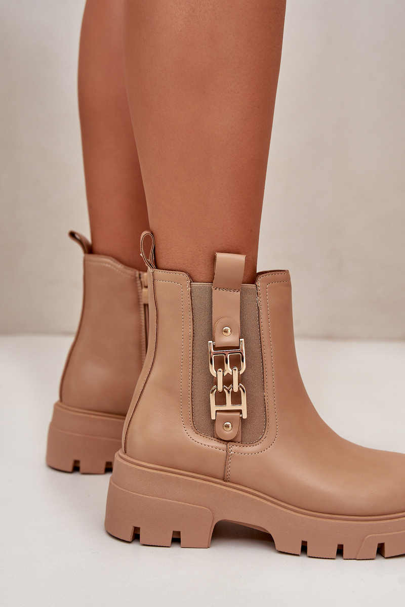 Warm Women's Boots Eco Leather With Golden Decoration Beige Erivianes