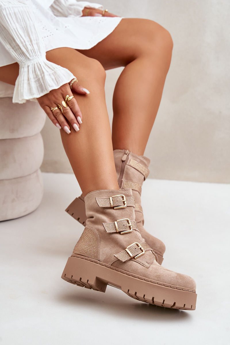 Warm Women's Boots With Buckles Beige Tiaeliana
