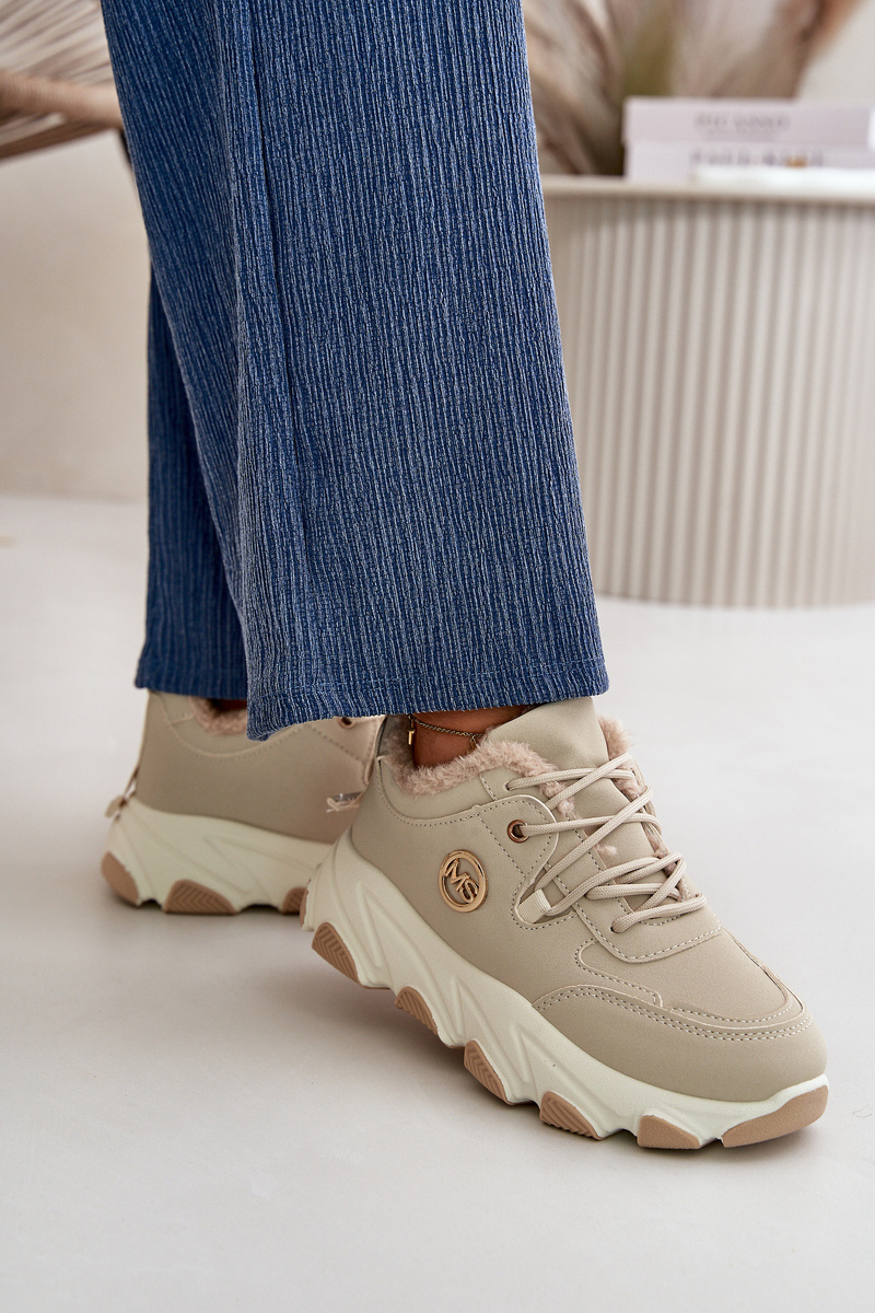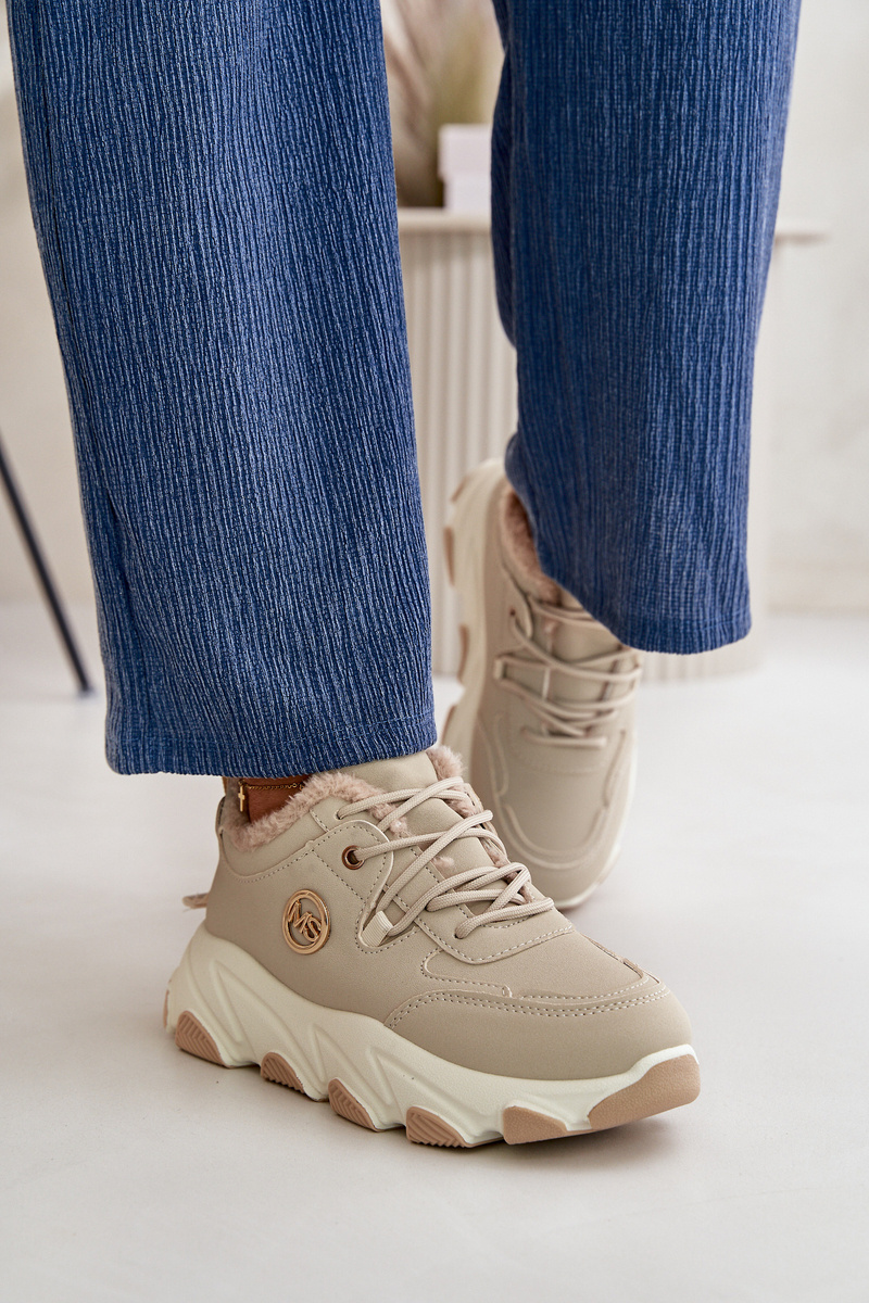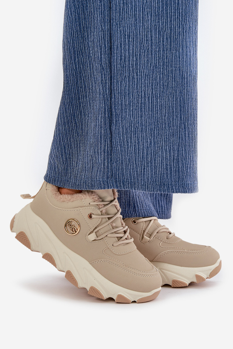 Warm Women's Sports Shoes Lace-up On Platform Beige Bialoa