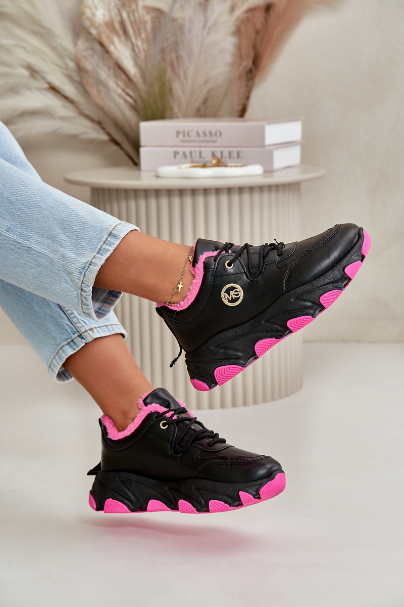 Warm Women's Sports Shoes Lace-up Platform Black Bialoa