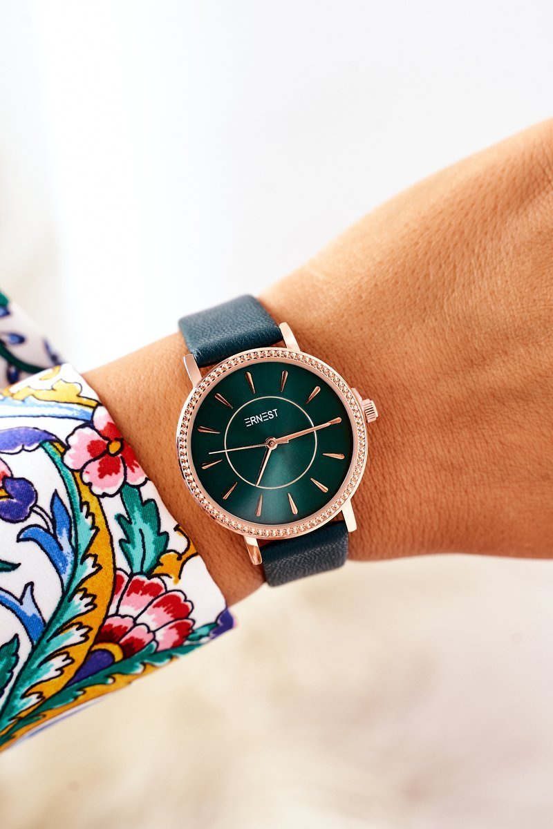 Watch On A Leather Strap Nickel Free ERNEST Dark Green