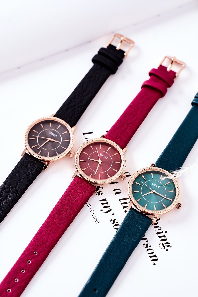 A beautiful ERNEST watch. The watch face is made of stainless steel and the strap is made of ecological leather. The watch is nickel-free.
