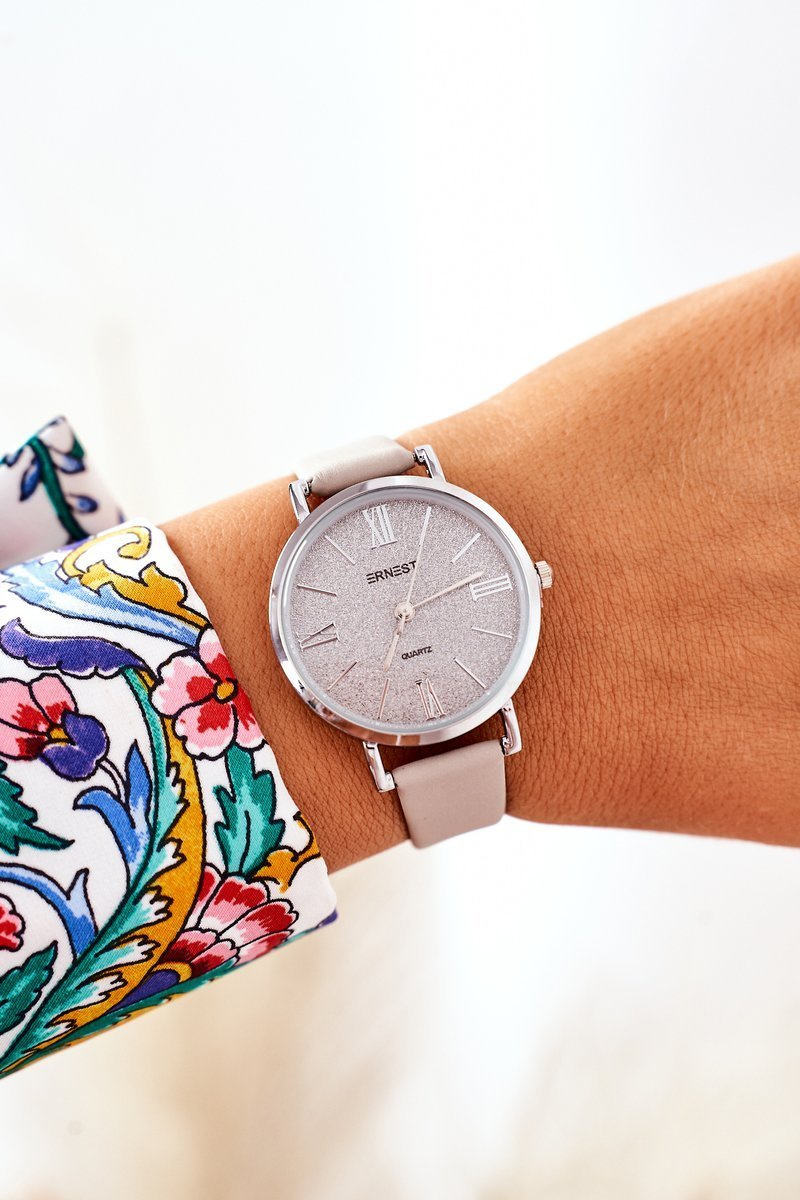 A beautiful ERNEST watch. The watch face is made of stainless steel and the strap is made of ecological leather. The watch is nickel-free.